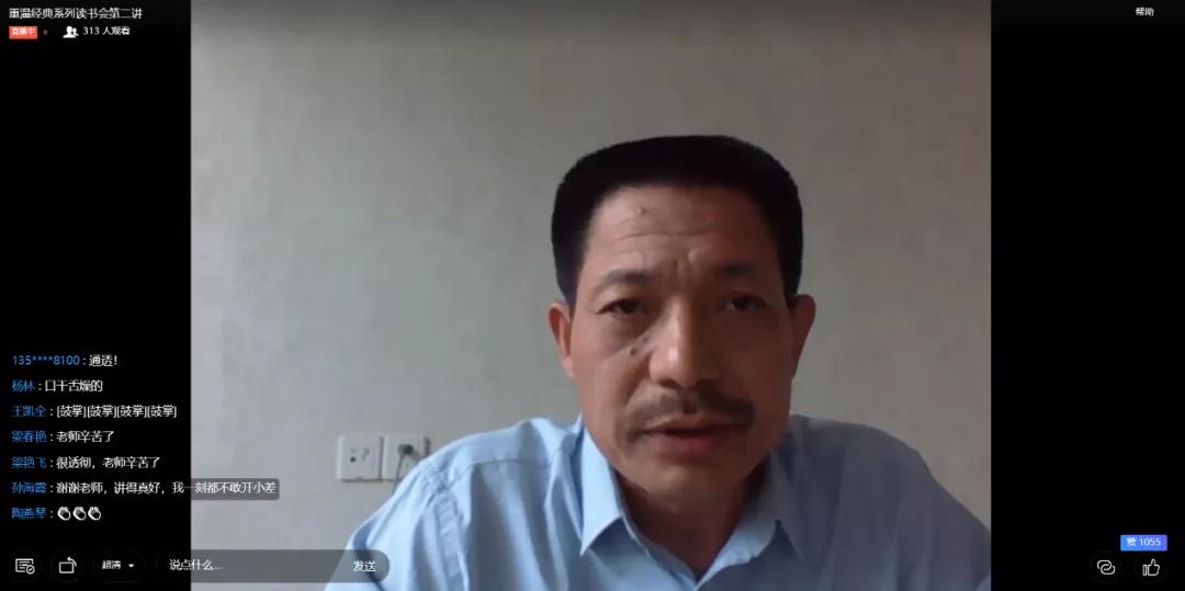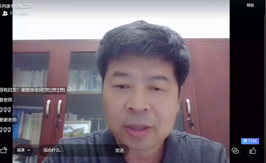 李宜江教授结合现实问题,对张教授引读《共产党宣言》中“核心概念的内涵”“资本和技术的合谋”“生产力的永恒革命”等精彩片段进行概括与深化,并分享了自己的学习体会。李教授提出,要学习张老师身上严谨的、扎实的治学精神和方法论,利用好全国教育基本理论学术委员会主办的“重温经典系列读书会”平台,珍惜“高人指路,云中漫步”的机会,并引用阿瑟·克拉克的名言“终身成长,从未长大”,表达对与会师生共同学习、共同成长的期待。