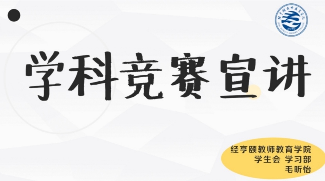 首先,毛同学就学科竞赛主题分四个方面进行讲解。在强调学科竞赛宗旨的基础上,她向大家系统介绍了我校主要的竞赛项目。除了一类竞赛、二类竞赛、三类竞赛等常规竞赛,我院也推出了极具特色的“一人一赛”活动,旨在提高同学们的学术能力。同时,她也详细讲解了学科竞赛的实施流程以及奖励机制。