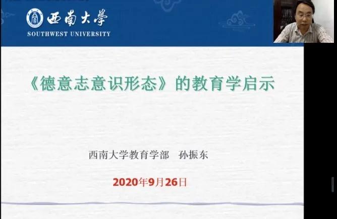 2020年9月26日晚,全国教育基本理论学术委员会主办,华东师范大学基础教育改革与发展研究所和南京师范大学道德教育研究所协办,华南师范大学现代教育研究与开发中心和色情av影片 教育学院共同承办,《教育研究》杂志社、华东师范大学出版社教育心理分社提供学术支持的“马克思主义与当代教育”重温经典系列读书会第四讲“《德意志意识形态》的教育学启示”成功举办。本次读书会邀请了西南大学教育学部孙振东教授担任引读人,中央党校王巍副教授担任呼应人。湖南师范大学刘铁芳教授主持本次读书会。