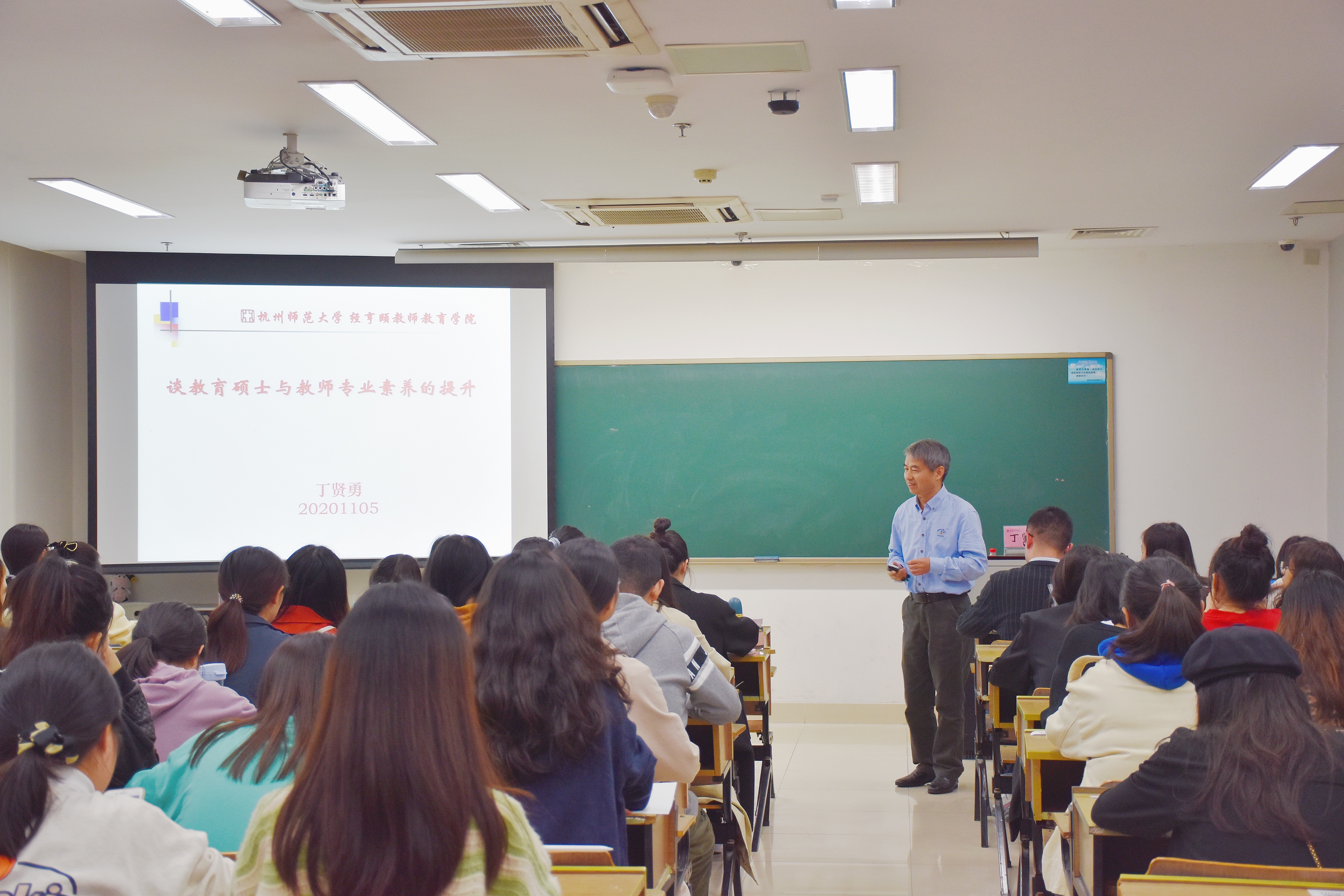 11月5日晚,经亨颐教师教育学院“子渊学术大讲堂”第一讲在恕园12号楼305教室举行。“全国优秀教师”、“全国教育硕士优秀指导教师”丁贤勇教授为我院全体研究生带来了“谈教育硕士与教师专业素养的提升”专题讲座。