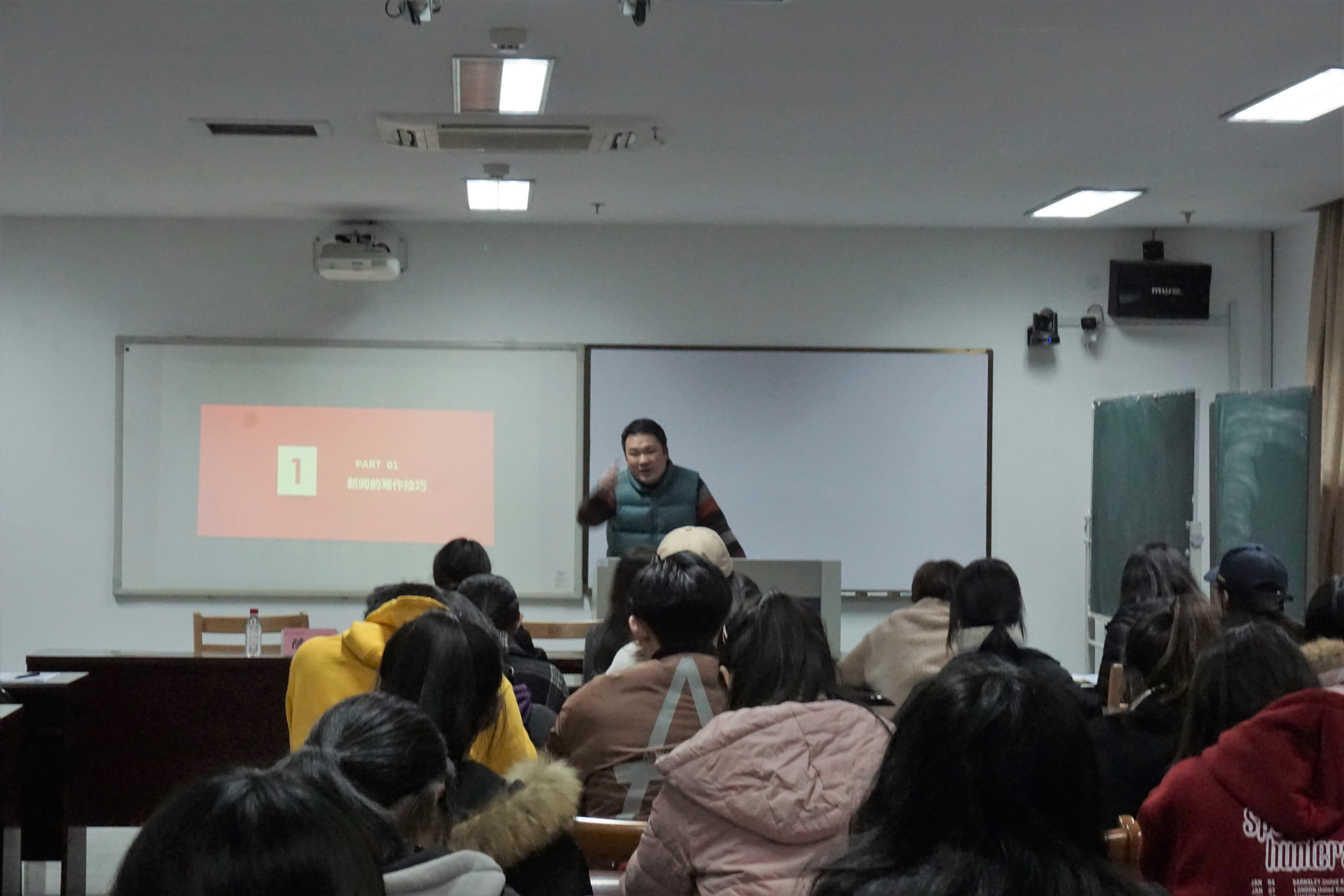 本次讲座中,陈老师以“校园新闻的采写与传播”为主题,从“新闻的写作技巧”