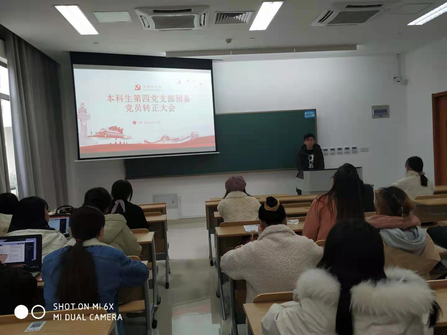 首先,4名申请转正的同志依次上台宣读转正申请书,汇报了自己在预备期里学习、工作、生活以及思想方面的进步和收获,表达了加入中国共产党的决心。之后,在当事人回避的情况下,3名正式党员以无记名投票的方式对4名同志的转正申请进行表决。经投票,全体正式党员一致同意朱欢等4名预备党员转为正式中共党员。最后,由支部书记程骁老师作总结性发言,强调所有党员在今后的学习生活中,要更加主动、刻苦和务实,在思想和行动上时刻与党组织保持一致,严格遵守党的规章制度,为党组织做出贡献。
