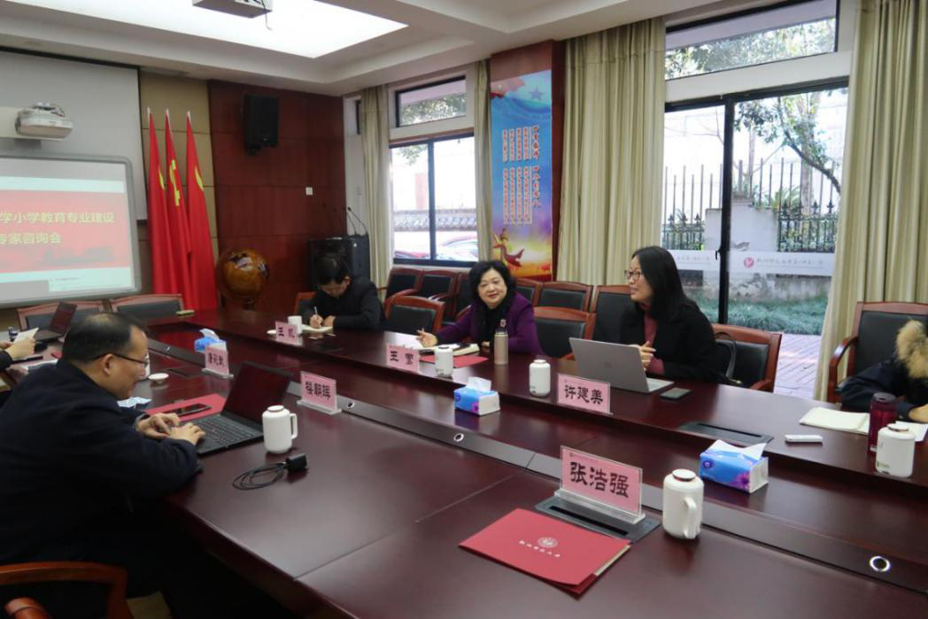 2020年12月16日,杭师大教育学院小学教育专业建设专家咨询会在色情av影片 第一附属小学召开。上城区教育局副局长王莺、天长小学校长楼朝晖、胜利实验校长张浩强、时代小学校长唐彩斌、天地实验小学校长王雷英、杭师附小校长俞富根等小学教育界名家到会。