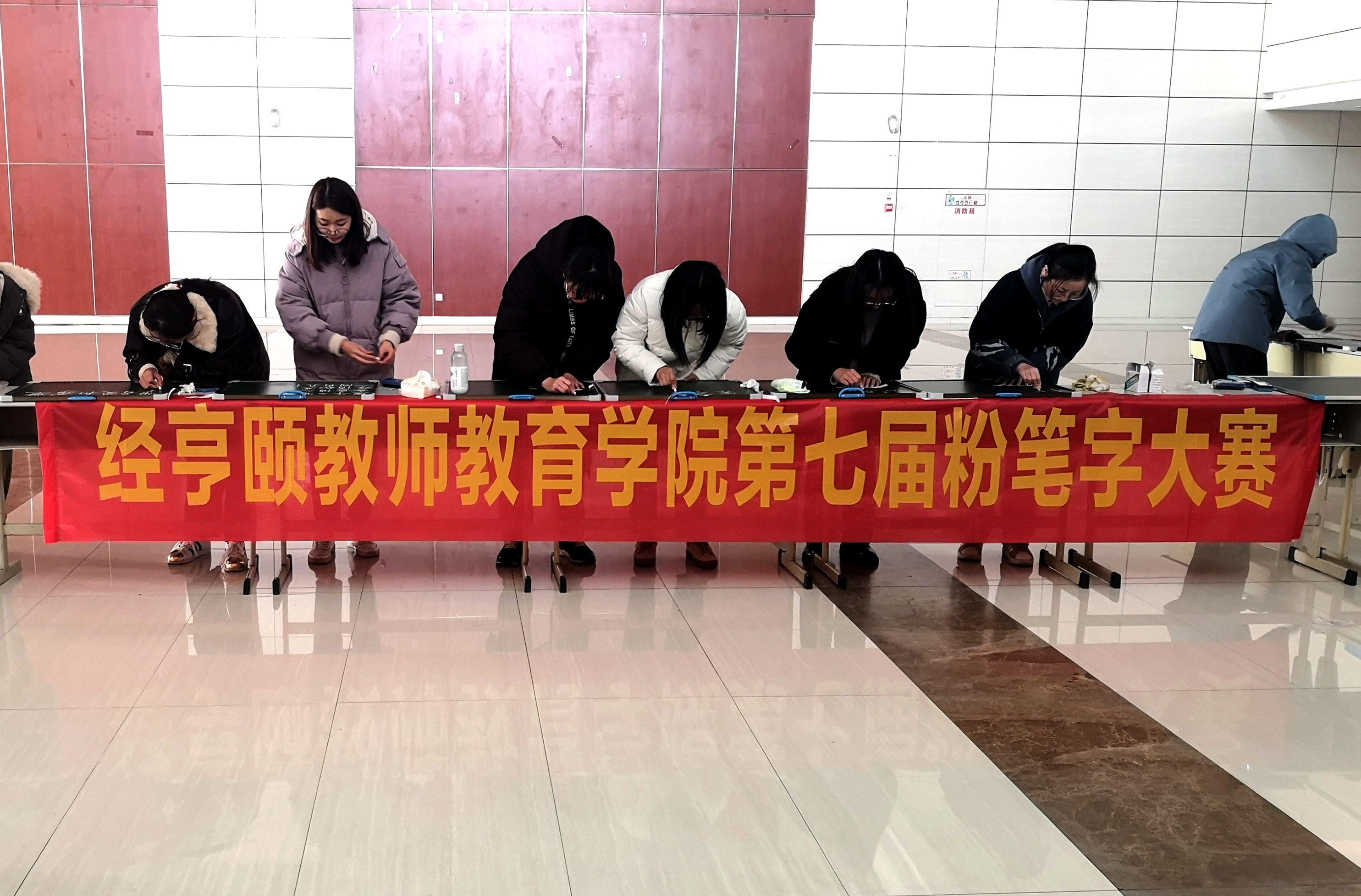 12月19日下午,我院在恕园2号楼一楼大厅举办第七届粉笔字大赛。