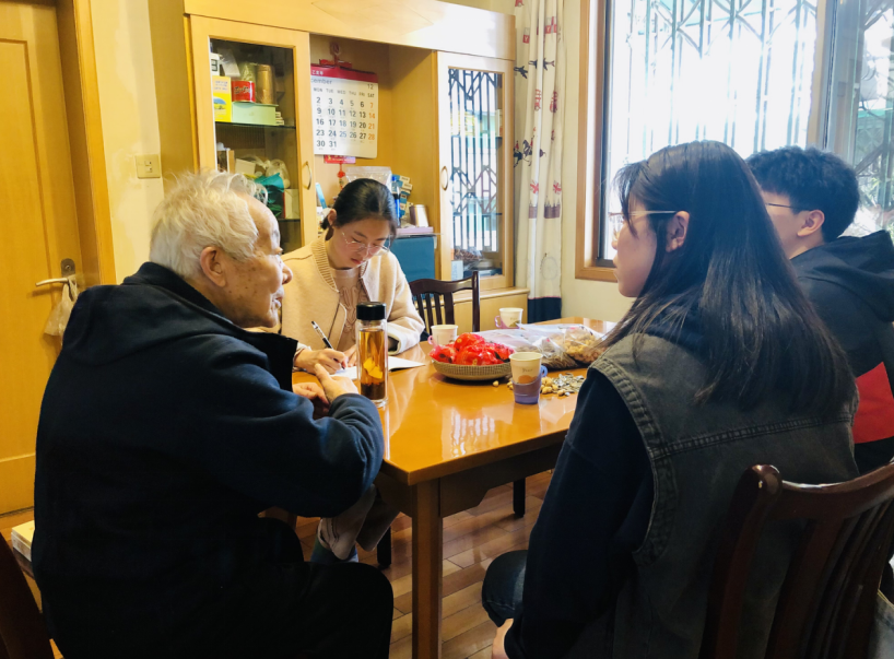 在古朴简单的住处,精神矍铄的徐树铭爷爷热情的接待了年轻党员们,徐老师对年轻党员的到来十分高兴,热情的分享起了属于他的入党故事。从土地改革到改革开放,从1949年加入中国共产主义青年团一直到1985年1月11日成为中共预备党员,回忆起那段过往,徐老师仍是感慨万千。35年的入党申请之旅很漫长,这期间他一直坚持递交思想汇报,积极同优秀的党员榜样学习、交流,寻求思想和工作上的不断进步。谈起党的时候,徐老师的眼中有着别样的光彩。最后他对青年党员说:“我们应该更加重视思想上入党,我们不能想着党员的身份能为我们带来什么,而是我们能为他人做什么,要始终记住为人民服务。”