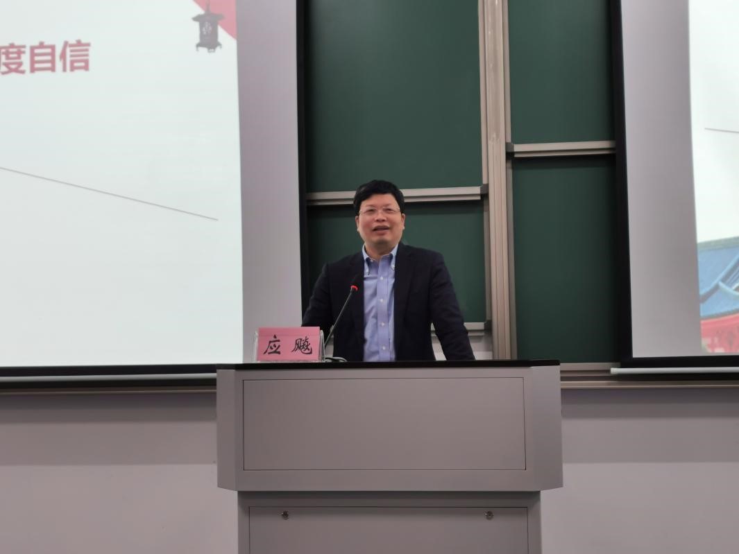 4月7日,学校党史宣讲团成员、校党委副书记应飚教授为我院师生作题为“百年变局与制度自信”的主题报告。学院全体师生党员参加讲座。