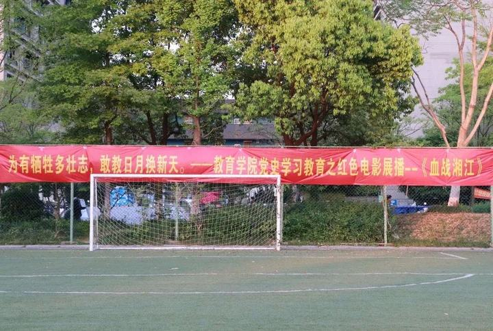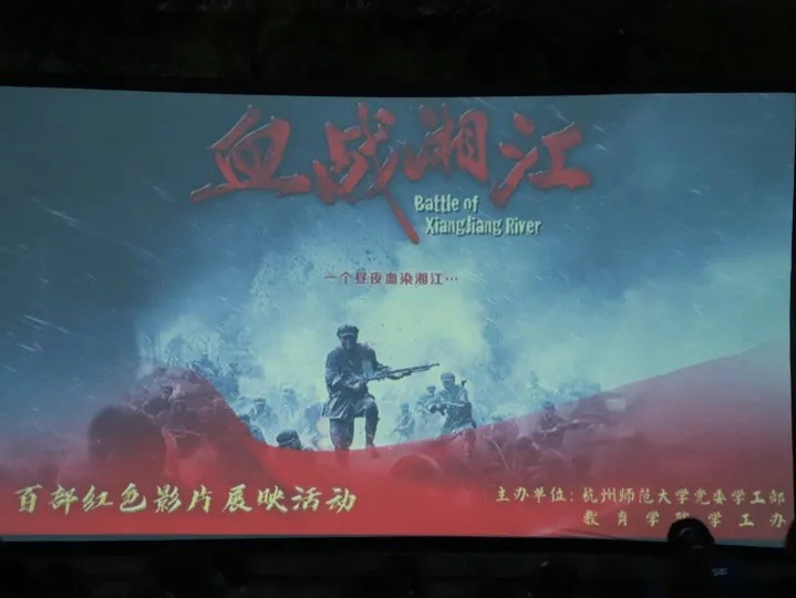 在纪念中国共产党成立100周年之际,4月9日晚,党委学工部、教育学院学工办共同举办的红色影片“露天影院”在A区小足球场内首次开播!当晚近300名师生齐聚一堂共同观看了影片《血战湘江》。