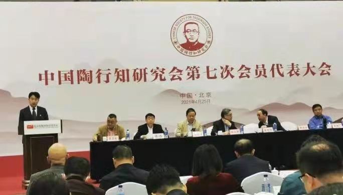 2021年4月25日上午,中国陶行知研究会第七次会员代表大会在北京召开。来自全国各省陶研会及各专业委员会分的400余名代表出席会议。全体代表以无记名投票方式选举并产生了第七届理事会理事成员;新成立的第七届理事会进行第一次全体会议,选举产生常务理事、会长、副会长、秘书长、监事。