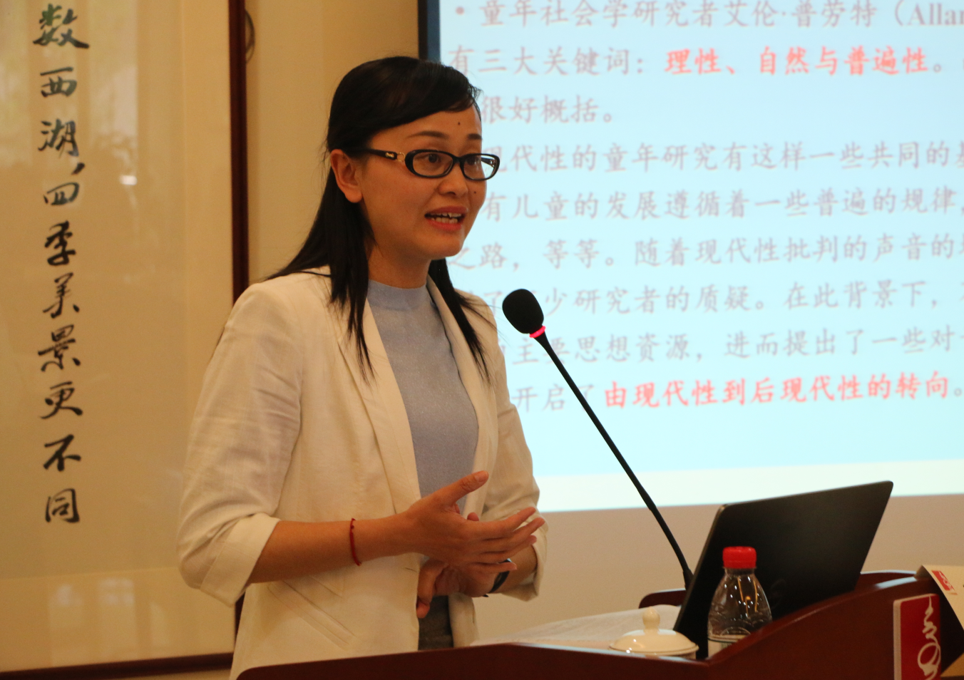 Associate Prof. Zhenyu Gao of Hangzhou Normal University gave a lecture on " The Reconstruction of the Philosophy of Childhood from the Perspective of Listening ", and Prof. Xuehong Miao moderated the lecture. He started from the fact that the visual culture was highlighted and the listening culture was neglected, and he proposed that the emphasis on imagery and visualization in educational practice needed to be transformed. He tries to reconstruct the future image for the philosophy of childhood, by reviving the listening tradition of Chinese philosophy and succeeding to the continual efforts of establishing listening philosophy in the West since early modern times. Professor Gao attempted to deconstruct the “visual metaphor” and demonstrated the necessities of turning to listening. Starting from the etymologically analyzing the concept of listening, he disclosed the complex meanings of listening and pointed out some effective approaches and strategies which broadened the research ideas for the future study of the relationship between children and philosophy.