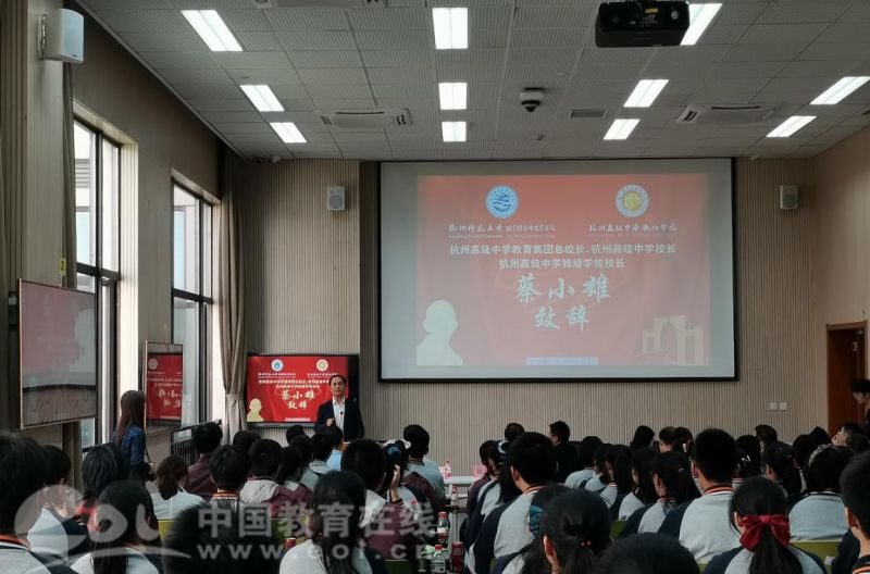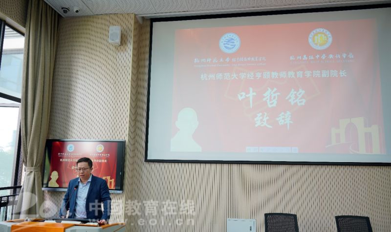 “我们与杭高钱塘学校共建“经亨颐(师范)实验班”乃“天作之合”,我们必将不辱使命,通力合作,为杭高钱塘学子提供深度培养,为祖国培育更多优秀师范人才。”叶哲铭说完,还勉励同学们要不负韶华,将实现自己的人生价值融入到实现中华民族的伟大复兴中。