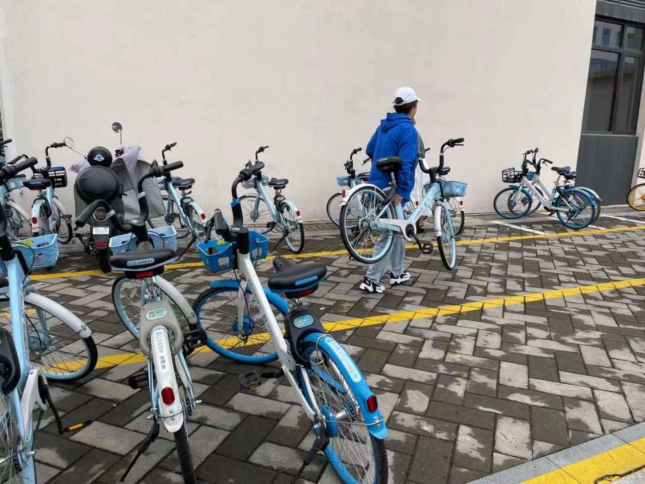 诚园是教育学院学生上课的主要教学地点,由于教育学院大部分学生生活在a区,每天很多同学都需要乘坐共享单车上课,但是共享单车摆放成了难题,在教学楼前,共享单车随意摆放。