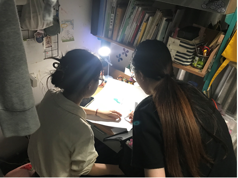 见习结束,回归校园生活后学业任务逐渐繁重。在完成美术作业时,寝室里的同学因初次尝试用马克笔作画,经验不足,为此感到烦恼。为帮助同学解决这一难题,叶籽彤同学将色号齐全的全套马克笔借给她,并帮助她分析画面布局以及色彩的搭配,希望她能够在逐渐进步的画技中重拾信心,顺利完成作业。
