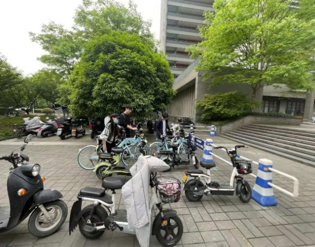打扫完毕后,成员们又来到博文苑10号楼前,重新摆放了楼下停着的自行车辆。虽然每天安保人员都会对校园的停放车辆进行有序整理,但是由于学生人员众多、出行量大等原因,自行车辆无序摆放的现象依然较为突出。大家将堵住道路出口的哈罗单车移至了对面辅路上,为道路出口留下了足够的空间。成员们认为,这种举手之劳方便了同学们的日常出行,也让校园环境更为整洁有序。