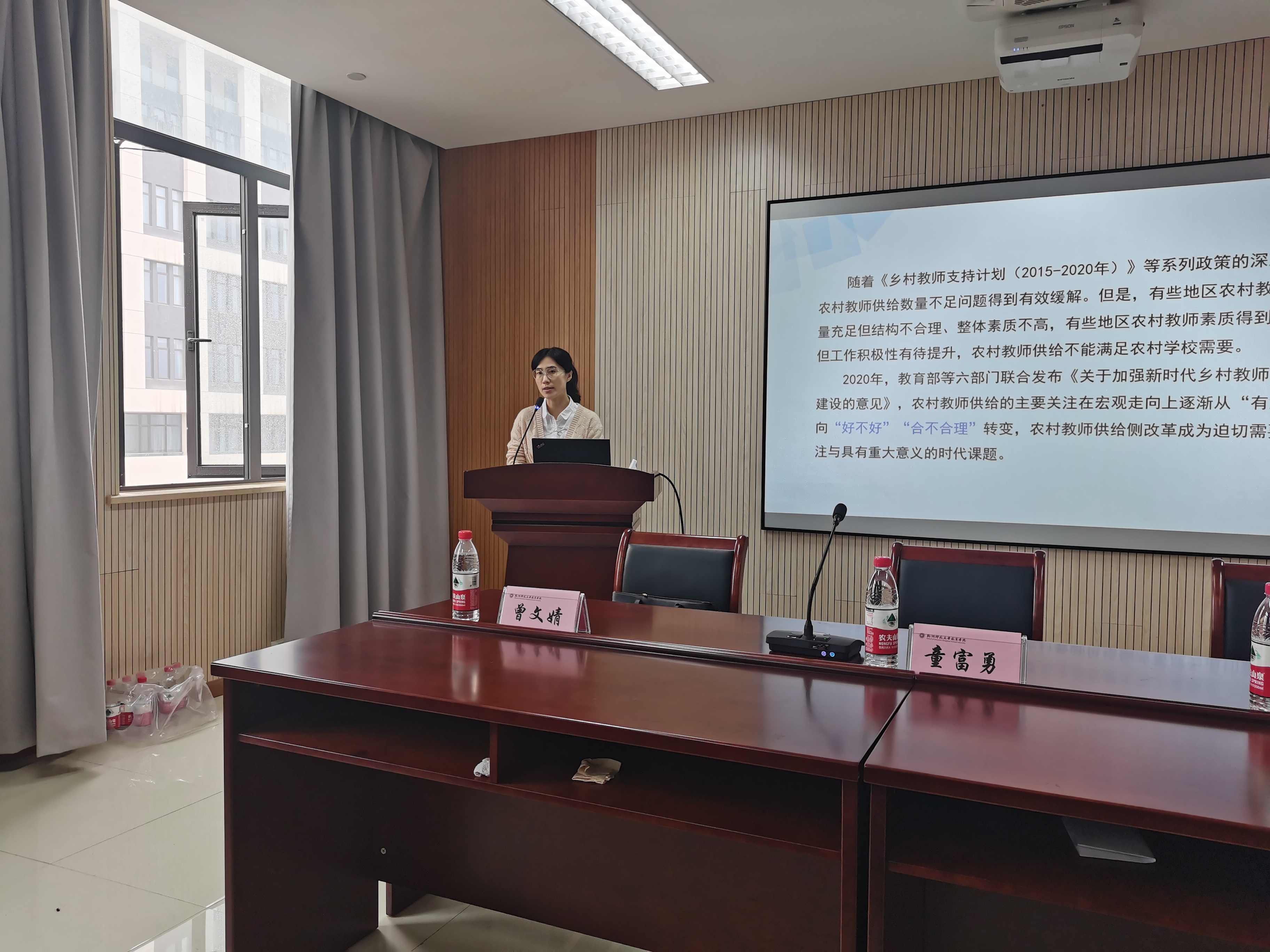 再次,由曾博士介绍“新时代农村义务教育师资供给与供给侧改革研究”的主题,曾博士从“研究背景、供给体系、现状与改进空间、改革方向”这几个方面展开本次的漫谈,师资供给体系中的各层级之间相对独立,前一层级的供给质量直接影响后一层级需求满足程度且供给具有“无偿供给”的特点。随着时代的发展,农村教师的供给问题已经从“有没有”向“好不好”、“合不合理”的方向转变,也就是从关注“数量”向关注“质量”转变。当前农村义务教育的师资供给还有很多地方需要加强和完善,王博士在当前发展的宏观背景下提出了四个方面的改革方向,以促进农村义务教育师资供给侧改革的完善,切实提高农村义务教育的质量。