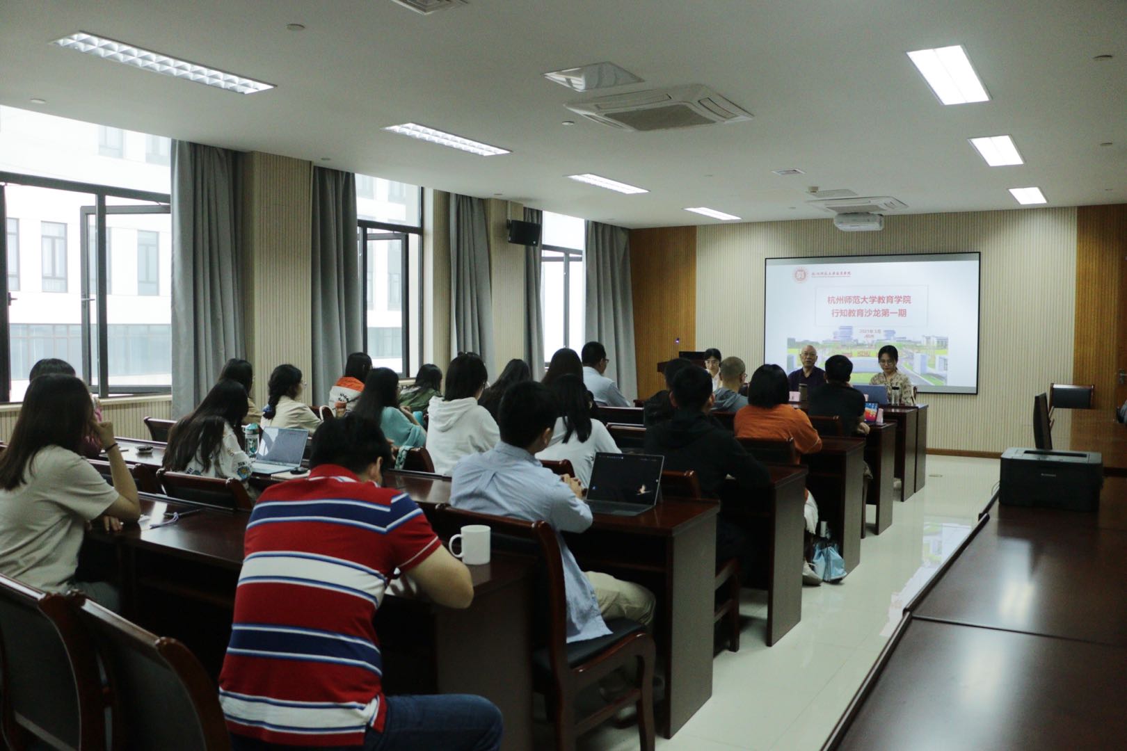 2021年5月19日下午,色情av影片 教育学院行知教育沙龙第一期在诚园5-406会议室顺利举行。第一期行知教育沙龙由童富勇教授主持,我院60余名师生参加。王俊琳博士和曾文婧博士分别做题为“哲学解释学视域下的教育研究探讨”、“新时代农村义务教育师资供给与供给侧改革研究”教育沙龙,陆伟博士和徐洁博士呼应。