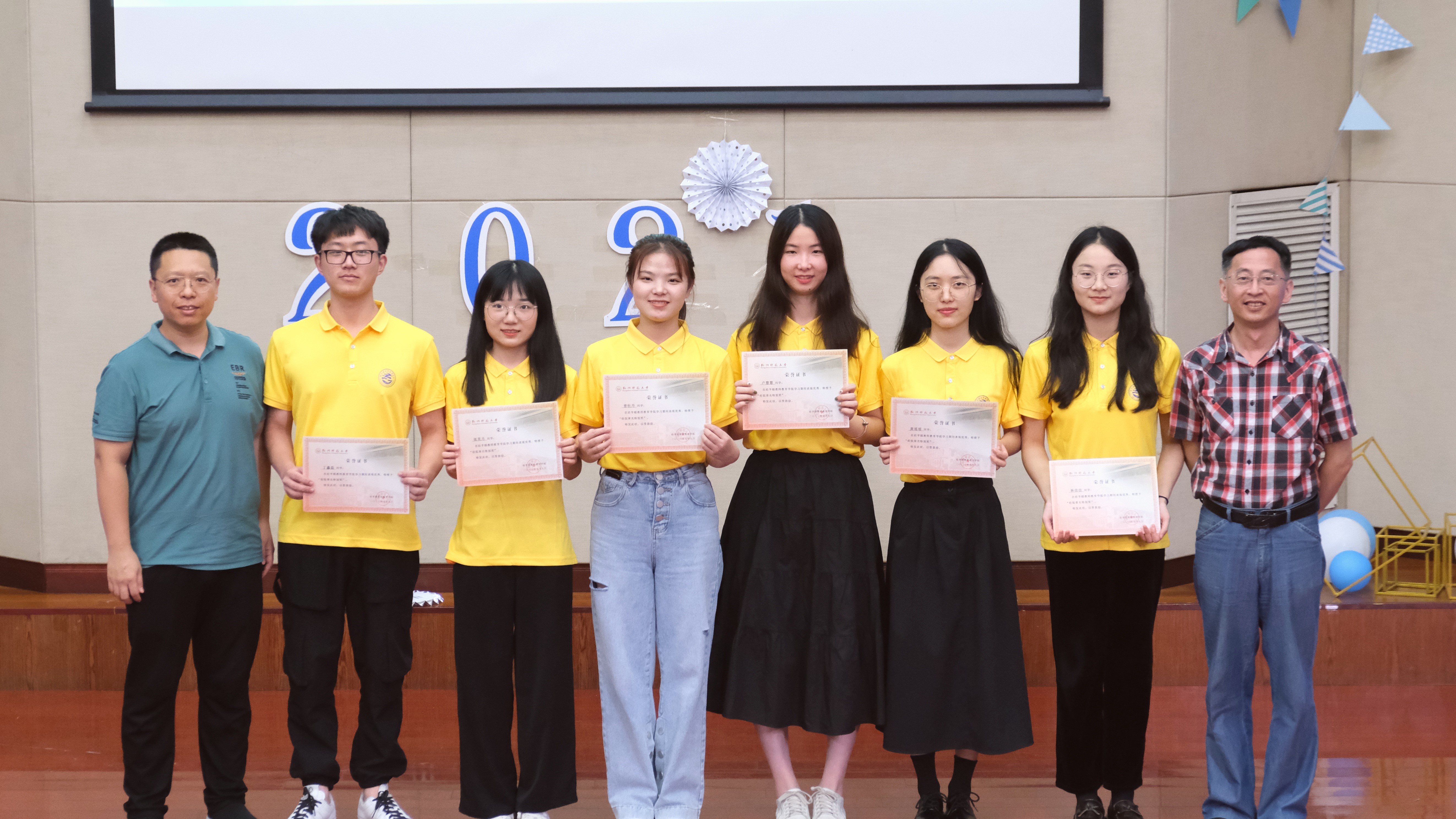今日经院学子锋芒已显,成绩斐然,彰显着我院特有的卓师文化,2021届毕业生中目前有22名学生成功考取研究生,将继续在大学校园中追寻梦想,为表扬他们的不凡成果,表彰仪式在欢快的乐声中进行。叶立军副院长宣读表彰名单,丁贤勇、黄岳杰、李毅、陆竞、叶林和孙庆友老师为他们颁发奖状。愿已成功考研上岸的我院学子仍能在今后的求学路上学有所成,逐梦前行。