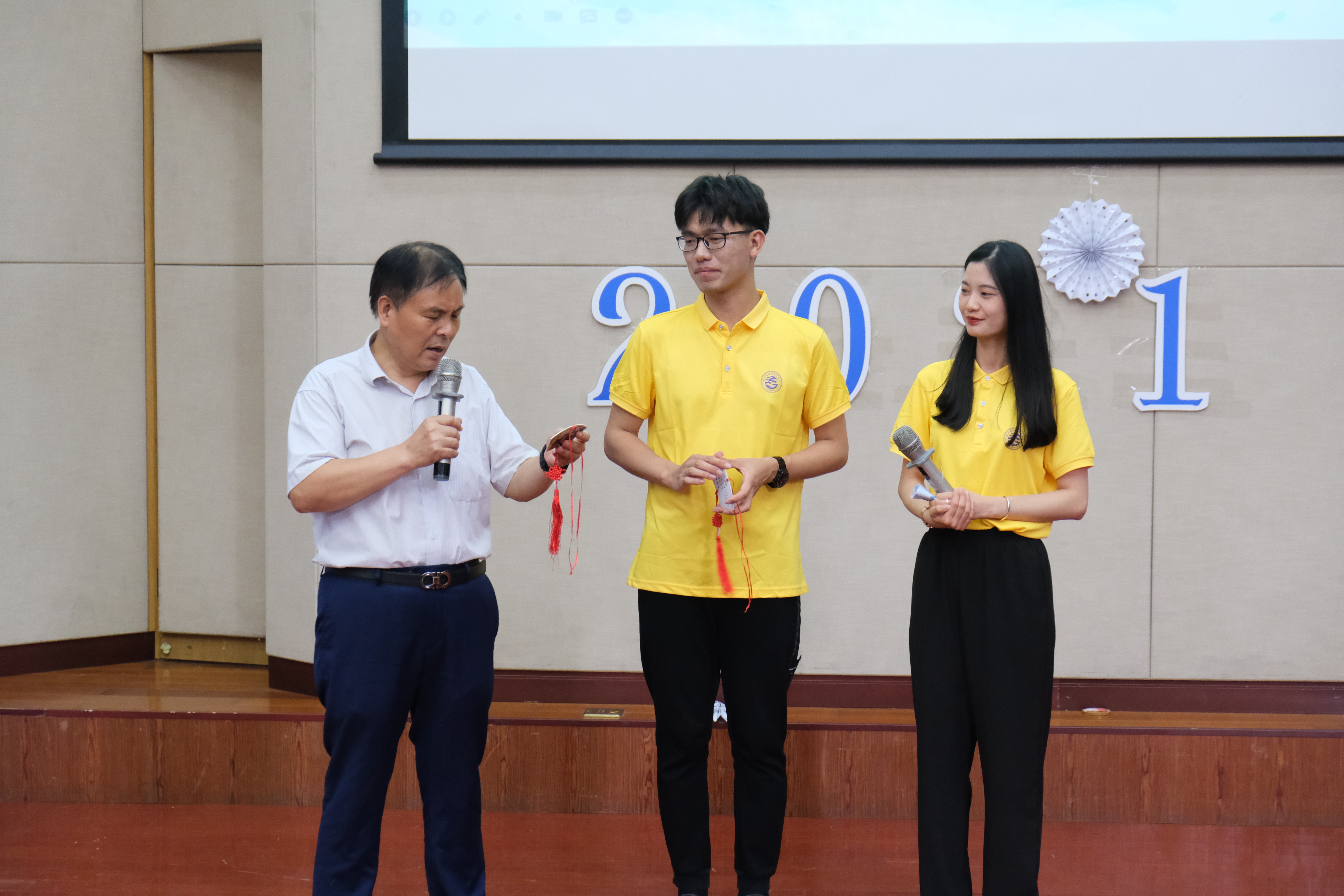 新的征程即将开启,但学院的教诲将永驻我院学子心灵。接着,毕业生和学院互赠各自精心准备的毕业纪念品,表达对彼此的祝愿。毕业生代表尹依璐、贺舒裕分别发言,感谢老师们的辛劳付出,感谢真诚陪伴的同学朋友。随后,叶哲铭副院长与毕业生代表共同揭开毕业生纪念铜牌;沈嫣副书记为校友工作联络员颁发聘书。