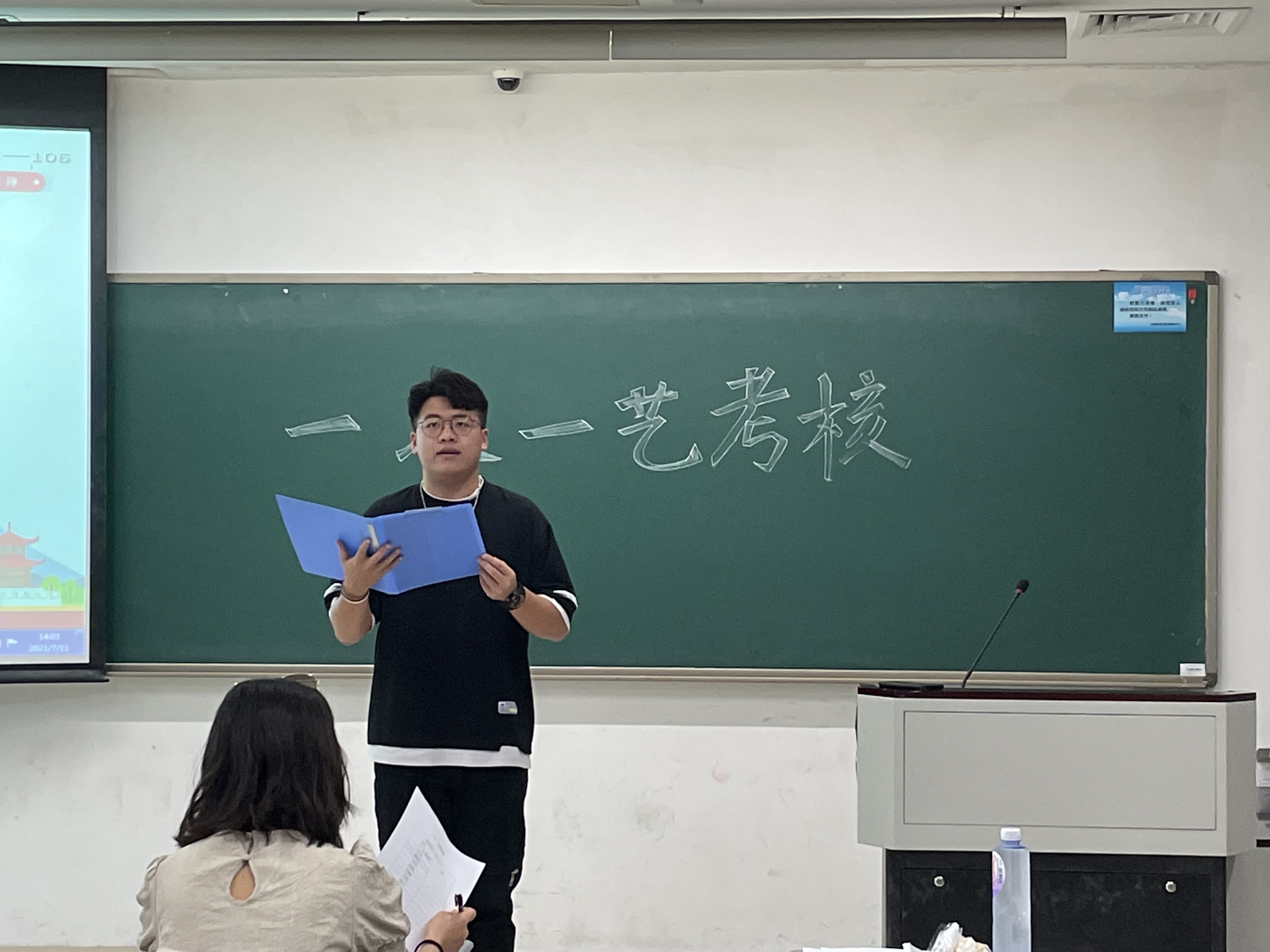 7月11日下午,我院于恕园11号楼开展“一人一艺”考核,考核内容有朗诵、书法、声乐、器乐、舞蹈、手工、雕刻等。本次考核我院共43人报名参加,分四组进行考核。