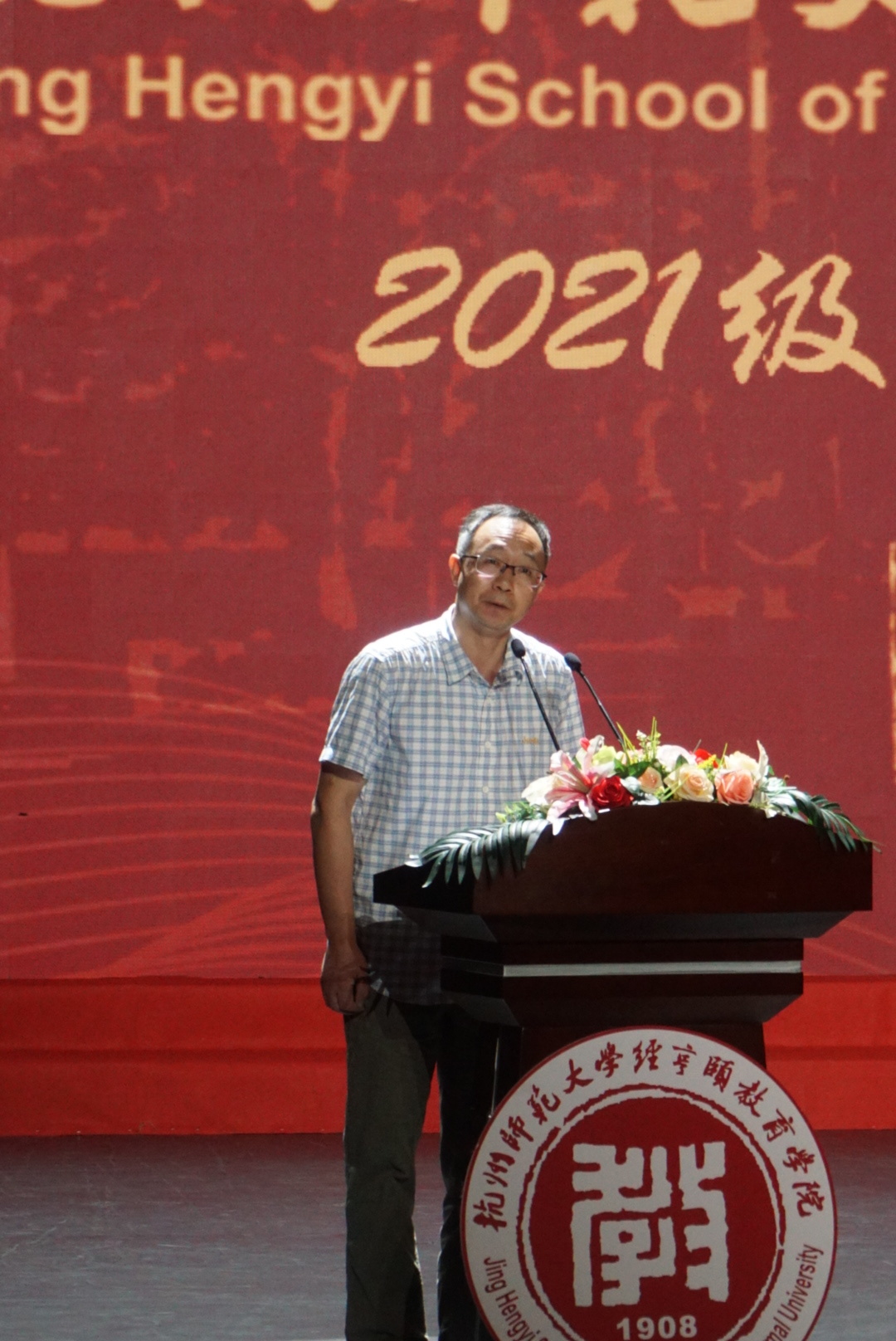 9月23日,我院2021级新生欢迎仪式在下沙1200座举行,我校知名校友、杭州市上城区教育局局长项海刚老师,我院执行院长严从根老师,党委书记蒋璐敏老师,副院长蒋永贵老师、许建美老师、赵立老师,党委副书记兼纪委书记沈嫣老师,2021级本科生全体班主任老师、学院行政教师代表以及全体2021级新生出席本次欢迎仪式,仪式由新生辅导员陈珂主持。