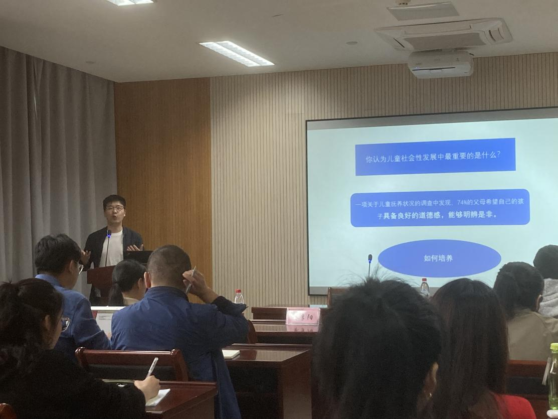 其次,由赛博士介绍“儿童诚实行为主推的实验研究”的主题,赛博士从“儿童社会性发展什么方面最重要”引出探讨,提出在“一项关于儿童抚养状况的调查中发现,74%的父母希望自己的孩子具备良好的道德感,能够明辨是非”,由此引出“如何培养”。赛博士依据“社会干预主推对儿童诚实行为主推的实证研究”展开论述,以儿童故事为示例,通过控制变量的实验,得出不同故事对儿童诚实行为培养的不同效益,强调儿童诚实行为培养中实证研究的重要性。随后,赛博士又论述了通过实验得出的成人言辞引导、儿童自我意识、道德观默学习对儿童诚实行为的助推效益。
