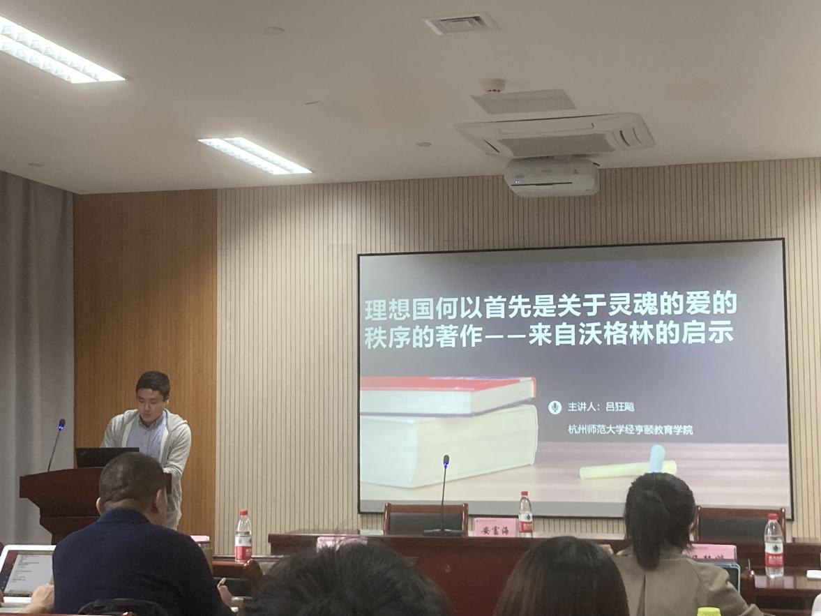 再次,由吕博士介绍“理想国何以首先是灵魂和爱的秩序的著作——来自沃格林的启示”的主题,吕博士从“研究现状、要回答前述的问题的思路、澄清与反驳施特劳斯对《理想国》中的爱欲之研判、如何理解沃格林对《理想国》的理解、沃格林的解读对于我们理解《理想国》中的城邦与灵魂的类比的意义、沃格林对柏拉图的哲学的理解、爱是柏拉图的“哲学经验”的核心”这几个方面展开本次的漫谈,施特劳斯认为《理想国》刻意抽离或忽略了爱欲,正是为了揭示爱与正义,以及更根本的哲学和政治的不相容,哲学是最高形式的爱欲。沃格林将柏拉图的哲学及其《理想国》及其中的“灵魂的内在秩序”视作柏拉图的“哲学经验”或其对“超越存在”的参与式经化验的“人类学的符号化表征”,那么,有理由认为“爱”占据了《理想国》的核心未知——没有它,我们就无法理解柏拉图在《理想国》中所试图表达的那种“经验或体验”。