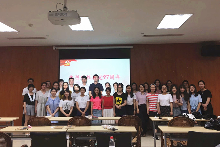 在国际歌的音乐声中,三个支部的党员一起拍照留念。这是三个支部党员第一次联合举办党日活动,获得了学院和各位党员的大力支持。党员们通过这次活动,巩固党史时政知识,重温入党初心,为纪念建党97周年献上最真挚的祝福。