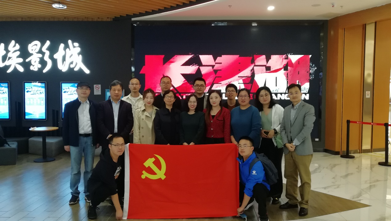 2021年10月24日下午,教工第二党支部16位党员同志在戎庭伟书记的带领下在卢米埃影城(西溪龙湖天街店)观看了电影《长津湖》。在抗美援朝战争胜利七十周年的重要历史时刻,影片《长津湖》以长津湖战役为背景,通过三个小时的视听震撼,讲述了志愿军连队在极其艰苦的环境下用顽强的意志保家卫国,奋勇杀敌的革命英雄主义精神。影片中那些“最可爱的人”为我们现在的幸福、安定生活奔赴异国他乡,忍饥挨饿,在枪林弹雨中书写“保家卫国”的革命战书。