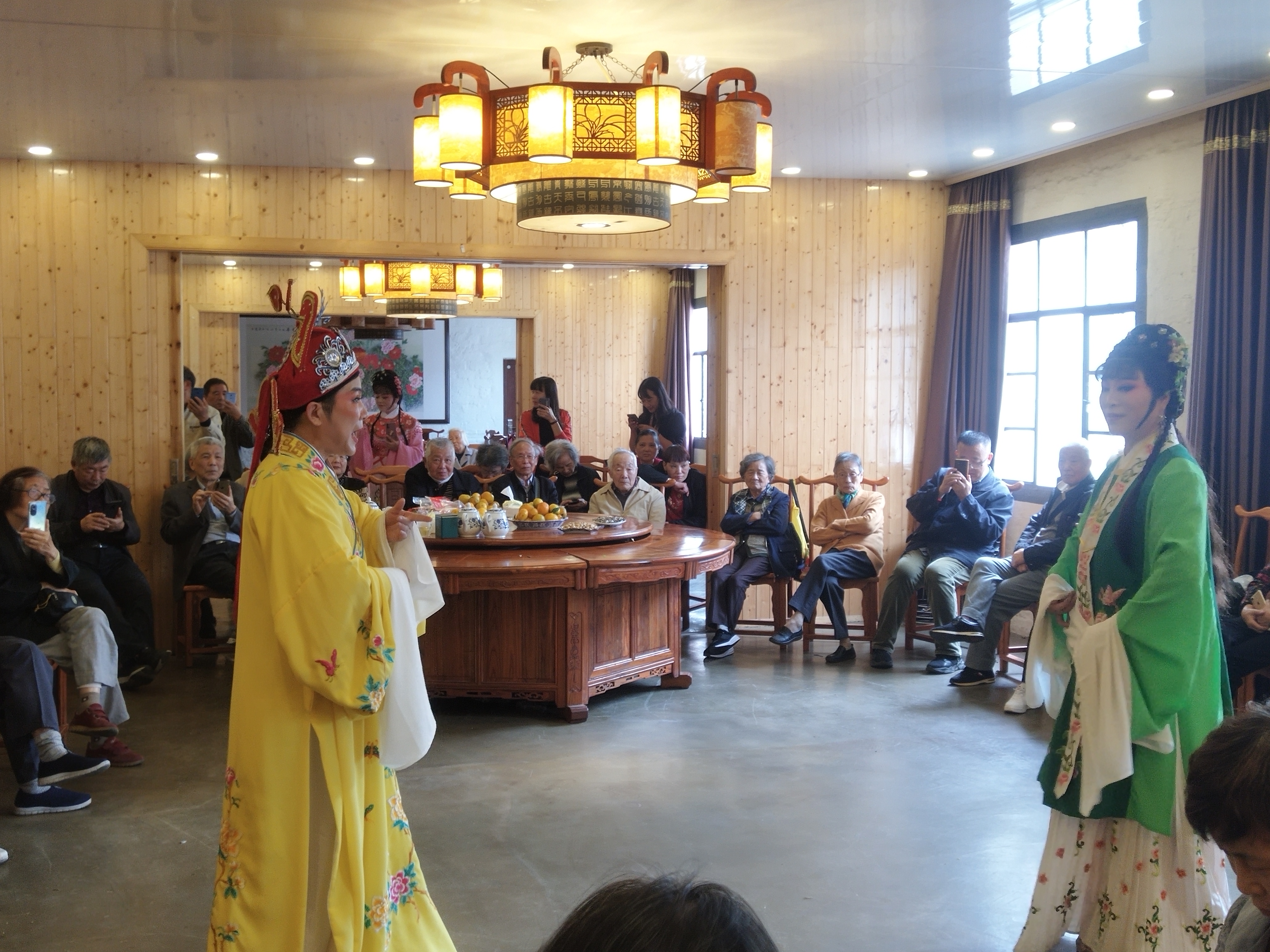 老同志们漫步在安昌古镇依河古街市中,传统特色店铺作坊鳞次栉比,特色美食如手工糕点、酿酒、酱鸭、腊肠、梅干菜等,或挂或摆,分外诱人,老同志们三三两两,边走边聊,边走边拍,置身于浓浓的江南民俗风情之中;老同志们参观了穗康钱庄、师爷馆等文化遗迹,一起观看了戏曲-越剧和莲花落的表演,为演员们的精彩唱腔鼓掌点赞,纷纷感叹古镇风貌保存完好,民俗风情氛围浓郁,历史文化积淀深厚。学院党委书记蒋璐敏也代表学院向退休教职工们表达了亲切问候,介绍了学院的新情况,祝福老同志们身体健康。