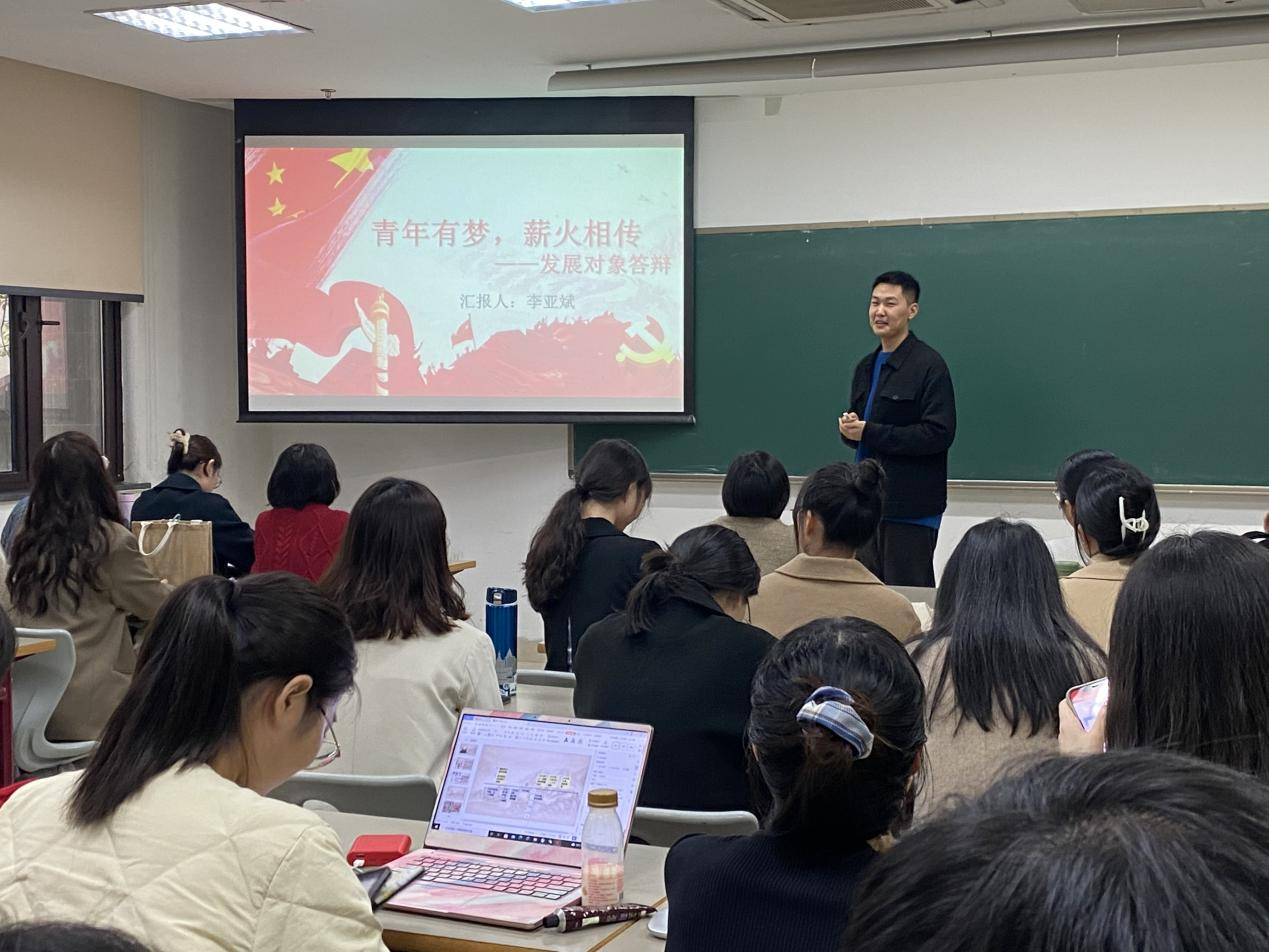 8位入党对象通过PPT展示答辩,围绕个人基本情况、入党动机、个人思想进步过程、确定为入党积极分子后的现实表现和科研成果、志愿活动、其他类比赛等突出成绩进行阐述,在场党员从个人学习生活、理论知识时事热点进行提问,从各方面考察入党发展对象。最后,经打分统计,潘安琪、唐文艳、李亚斌、胡琪4位同学顺利通过答辩。