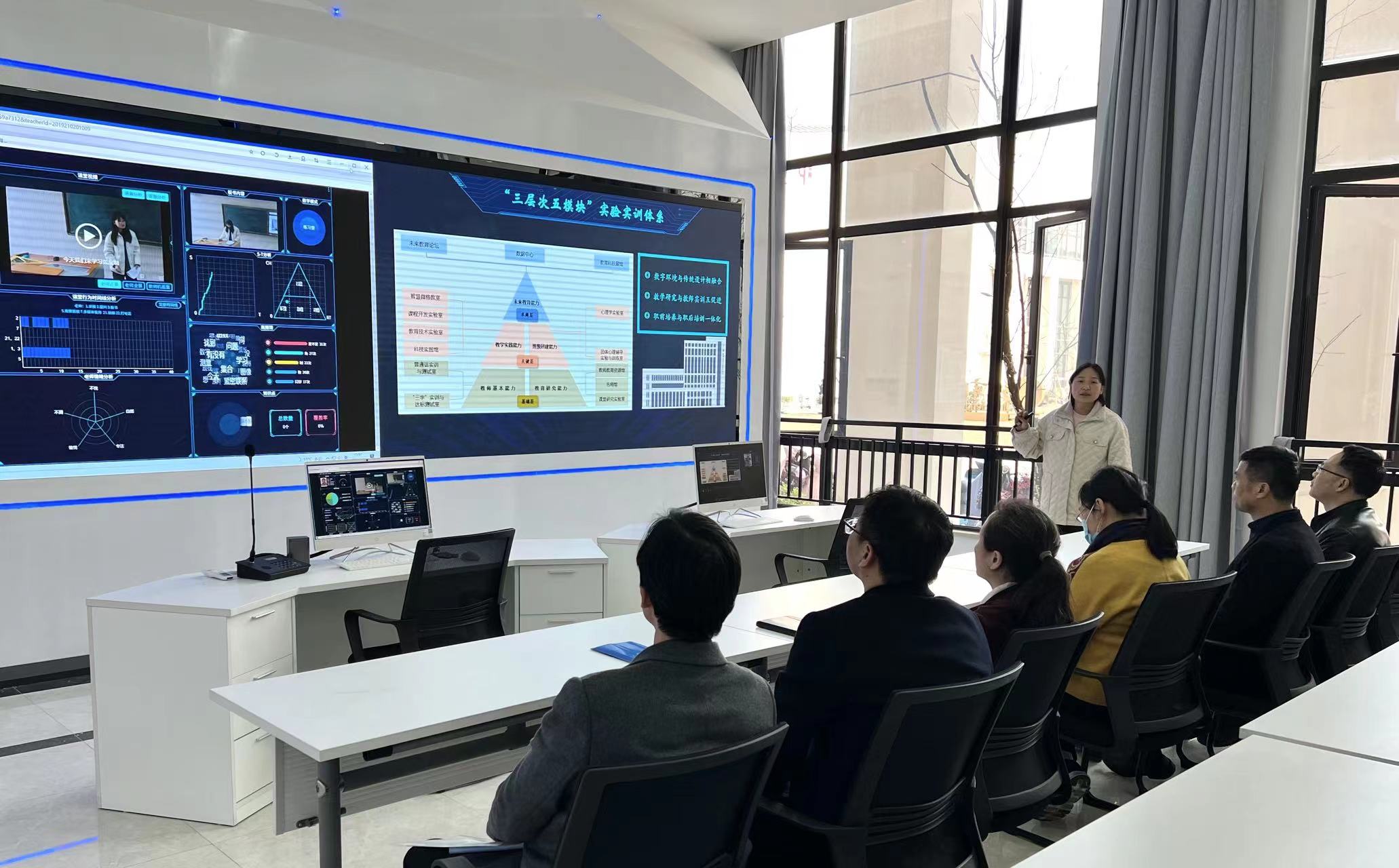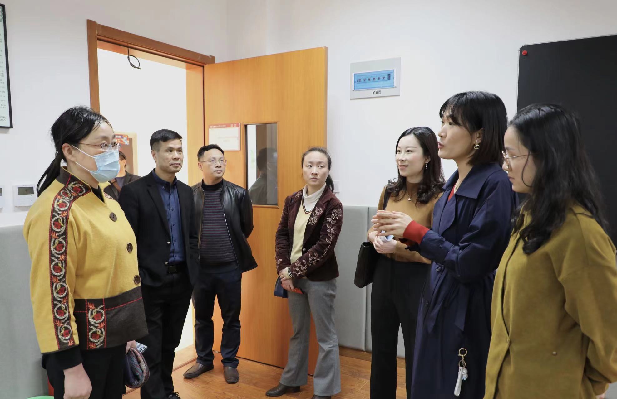 首先,实验员董丹丹介绍并展示了学院实验实训大楼的大数据中心以及实验室的整体建设情况。之后,社科联领导实地走访和参观了脑电实验室、心理调试实验室、心理干预实验室、感觉统合室、绘本阅读室、物理治疗室等二十余间实验室,并听取了实验流程介绍。