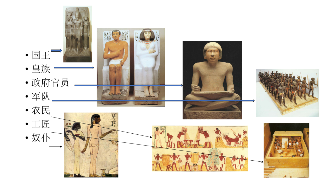 随后,蒲慕州教授为大家介绍了古埃及的社会构成。他指出埃及由三种社会阶层所构成:古埃及最高统治者法老(国王)、古埃及新王国时期兴起并登上政治舞台的中小奴隶主阶层涅木虎(贵族)和下层自由民涅杰斯(农,匠,商)。