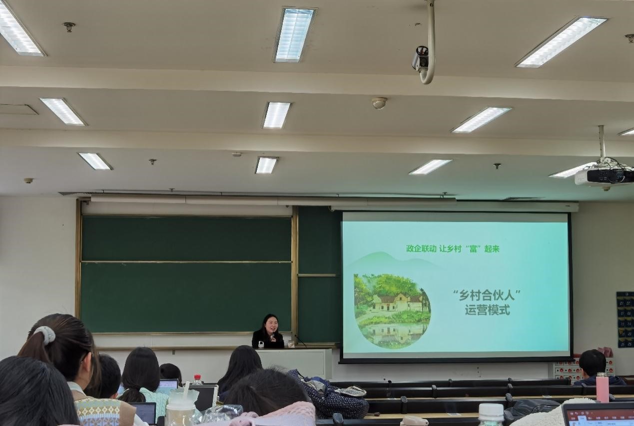 首先,王老师播放鸬鸟镇的宣传短片,向同学们展示了鸬鸟镇的自然风景、人文景观、产业活动,提到目前鸬鸟镇发展的是农文旅融合产业。接着讲述了乡村振兴战略的最终目的是改变青年人才从乡村流入城市的单向流动现状,从而实现城乡平衡发展。其次,王老师介绍关于乡村振兴,鸬鸟镇的做法是政党委部署战略,在党代会提出鸬鸟镇建设的目标,然后基层党组织围绕目标展开工作,最后由党员带头,带领群众一起参与建设。并且,王老师还提到鸬鸟镇针对基层党组织开展了 “磐石计划”,针对党员开展了“奋楫计划”。鸬鸟镇的蜜梨产业、旅游产业蓬勃发展,濒临倒闭的产业得到优化,鸬鸟镇还建设了双创园区、共富竹林等。最后,王老师讲述乡村振兴需要勇担当、有作为、能吃苦的青年人。呼吁同学们能够去乡村参观,为乡村注入青年活力。