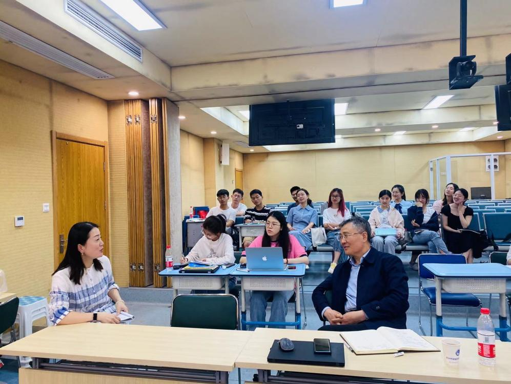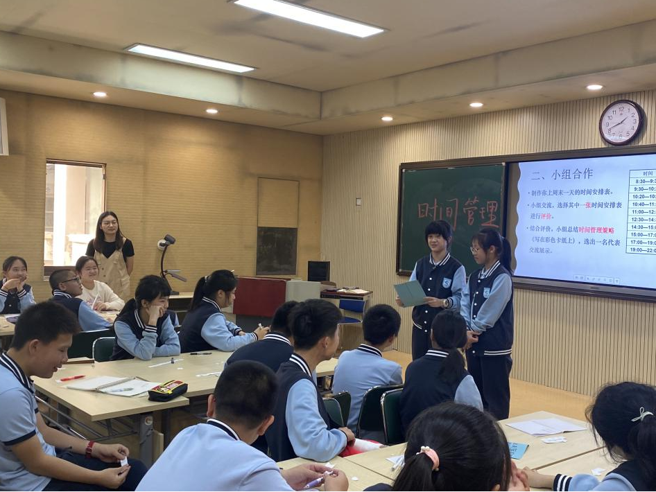 当天下午首先由许佳敏同学带来《时间大会》主题班会,其次由刘飒同学进行班主任分享,第三个环节由杨逸静同学带来《拖延,达咩,达咩!》的主题班会。指导老师们分别对三位同学的汇报进行点评,肯定了三位同学在实习期间的表现,并对汇报过程中存在问题进行指导改进。导师评课环节,巩老师、何老师和姜黎敏老师针对主题班会和班主任工作如何开展进行研讨交流。何老师强调实习生们要做好班主任工作,关注教学能力,把教育当作一份真正热爱的工作。巩老师首先感谢保俶塔申花实验学校提供的实习机会,感谢何老师的精心安排以及指导老师们的耐心指导,教导研究生们做任何事情要将内容和形式结合起来,内容要深刻,形式要精彩!要以问题为导向、任务为驱动,回归教学本质,向优秀老师看齐!