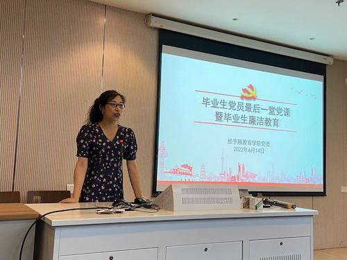 2022年6月15日下午,学院党委组织召开2022届毕业生党员“五个一”廉洁教育主题党课。学院党委副书记、纪委书记沈嫣,本科生第四党支部书记周健康及全体2022届毕业生党员参加此次微党课。