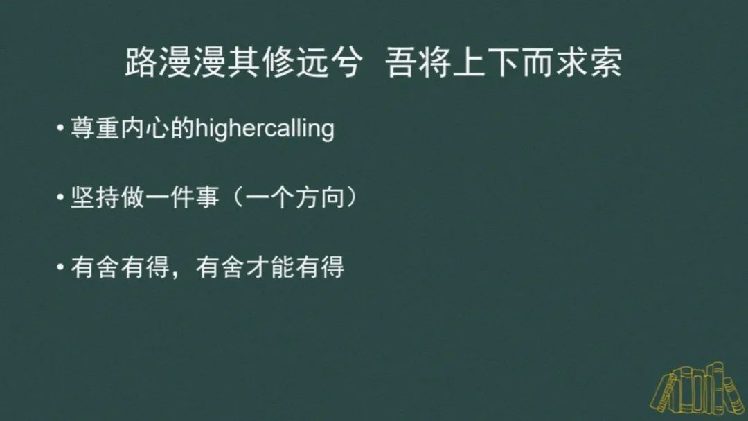 赵老师在研究生阶段出现了就业迷茫。她深入剖析了自己的就业经历,给未来也可能面临类似抉择的同学们以借鉴。赵老师心中一直没有放弃的“higher calling”是对学术身份的追求,因此她最终选择读博。她给出同学们三点建议:尊重内心的“higher calling”,坚持做一件事或一个方向,有舍才能有得。