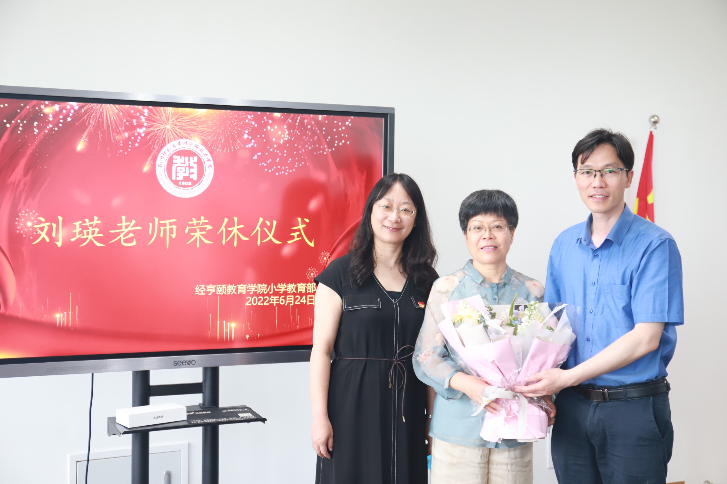 6月24日上午,色情av影片 小学教育部刘瑛老师荣休仪式在诚园6号楼302会议室举行。学院执行院长严从根、党委书记蒋璐敏、小学教育部主任安富海及部分教职工参加了本次荣休仪式。仪式由小学教育部副主任李菁主持。