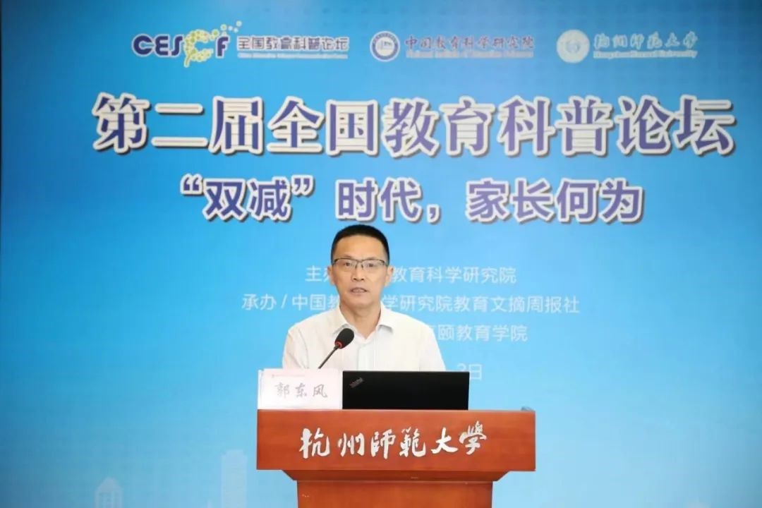 7月2日,以“‘双减’时代,家长何为”为主题的第二届全国教育科普论坛在色情av影片 开幕。教育部政策法规司司长邓传淮,中国教育科学研究院党委书记、院长崔保师,色情av影片 党委书记郭东风,副校长黄兆信出席。开幕式由中国教科院副院长于发友研究院主持。