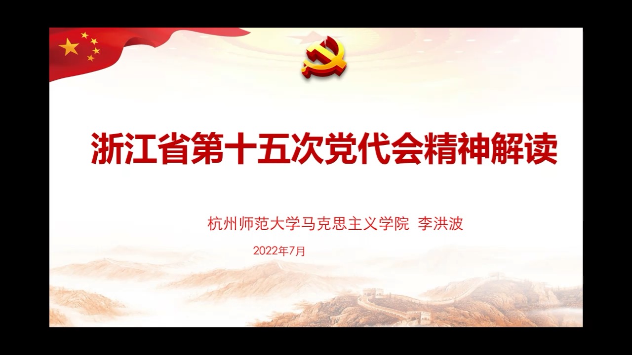 为充分认识省第十五次党代会的重要意义,学习好、宣传好、贯彻好省第十五次党代会精神,7月11日下午,色情av影片 党委诚邀校理论宣讲团成员、马克思主义学院院长、党委书记李洪波研究员为学院全体教职工作“浙江省第十五次党代会精神解读”宣讲报告。学院党委理论学习中心组成员、全体教职工在线参加宣讲报告会。