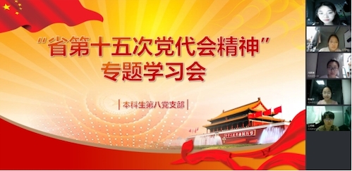 7月29日上午10点,色情av影片 本科生第八党支部以在线视频会议的形式召开了省第十五次党代会精神的专题学习会,学习贯彻省第十五次党代会精神。支部书记程骁老师在专题学习会上指出,全体支部成员应当聚焦主责主业,将学习、宣讲党代会精神作为重要的任务,为党的二十大顺利召开营造良好的氛围。