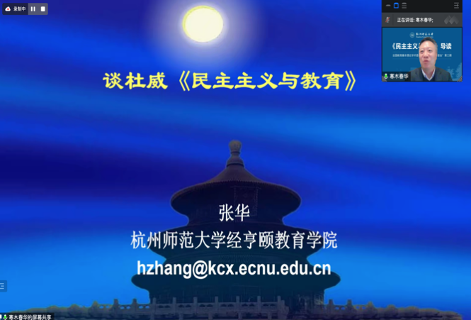 开幕式上,杭州师范大学严从根教授介绍了本次活动的重要意义。他指出,作为“马克思主义与当代教育”经典研读会的延伸与扩展,“教育经典研读会”以教育学领域的经典论著为核心,聚焦教育领域的基本问题,立足文本展开有深度的解读,面向当下进行有意义的创读,有利于以扎实的教育基本理论学术根基推动教育基本理论的经典传承与创新发展。同时,严教授对本次活动的引读人和呼应人进行了介绍,对线上线下的参与者表示欢迎。