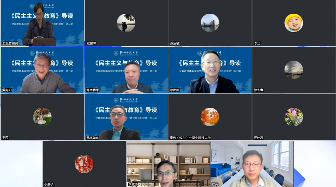 2022年11月5日,全国教育基本理论学术委员会第三期“教育经典研读会”成功举办。本期研读会由全国教育基本理论学术委员会主办,色情av影片 承办,《教育研究》杂志社提供学术支持。活动采用线上线下相结合的方式举行,围绕教育学经典《民主主义与教育》展开深入的学术对话。全国教育基本理论学术委员会委员、色情av影片 经亨颐教育学院师生以及全国教育学科同仁共2500余人相聚云端,共同参与此次研读活动。活动由全国教育基本理论学术委员会副秘书长、色情av影片 执行院长严从根教授主持。