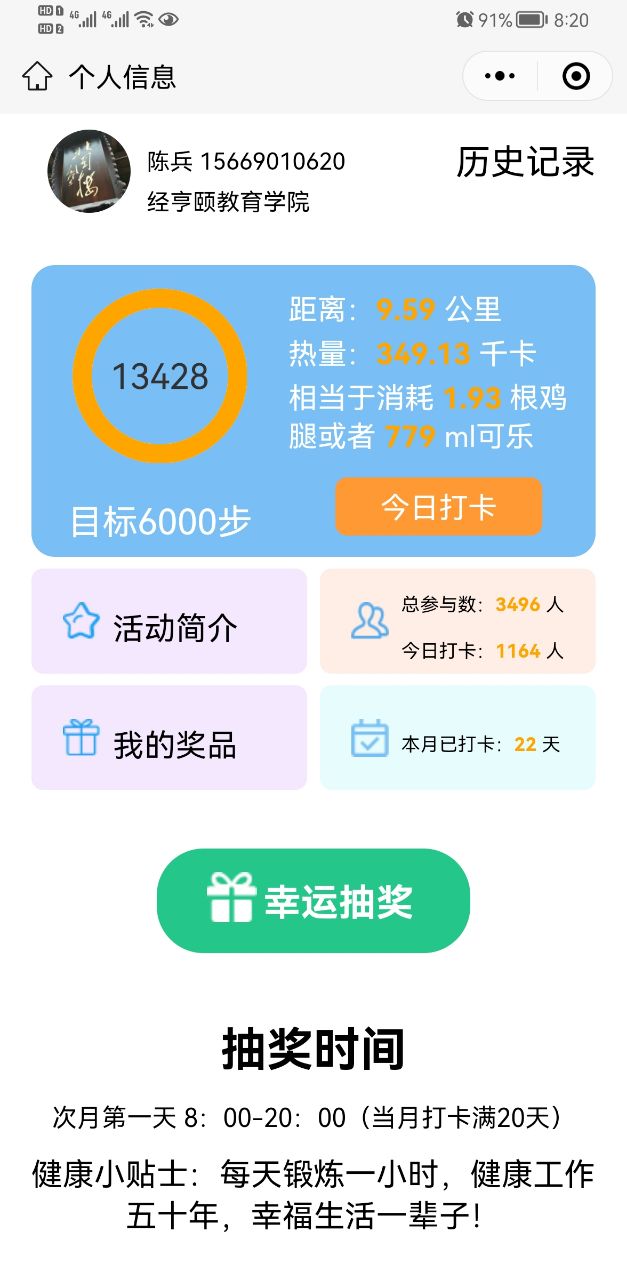 活动采用云打卡的形式,活动参加灵活,不受空间、场所的限制。本次活动,共吸引了16名教师参与打卡,有在家里打八段锦锻炼的,有打羽毛球的,有健步走的,也有边带娃边健步走的。此次活动,充分调动了教师们的运动热情,也希望教师们能够继续保持健康运动的好习惯,在运动中收获更健康的身体与更美好的生活。
