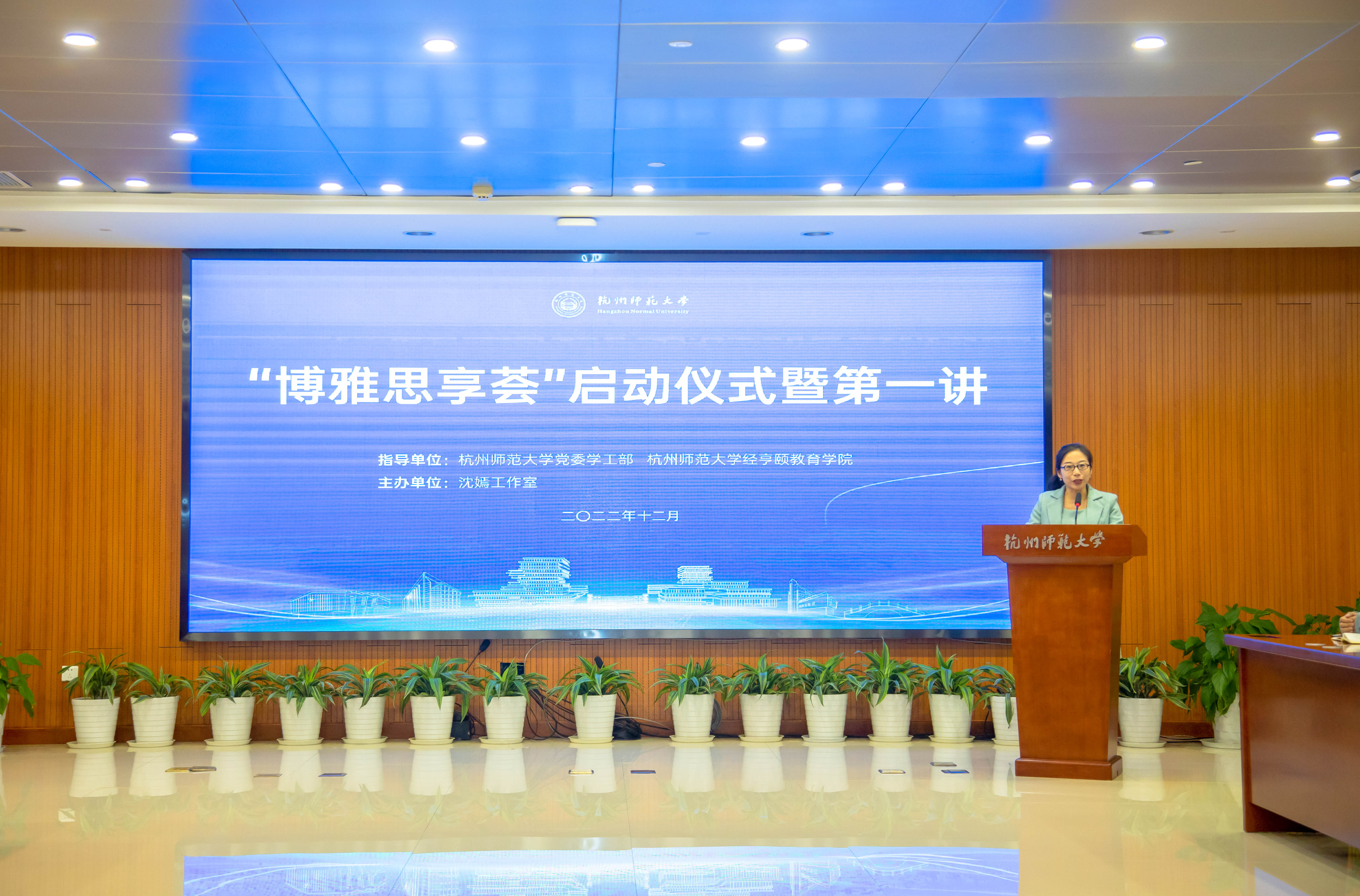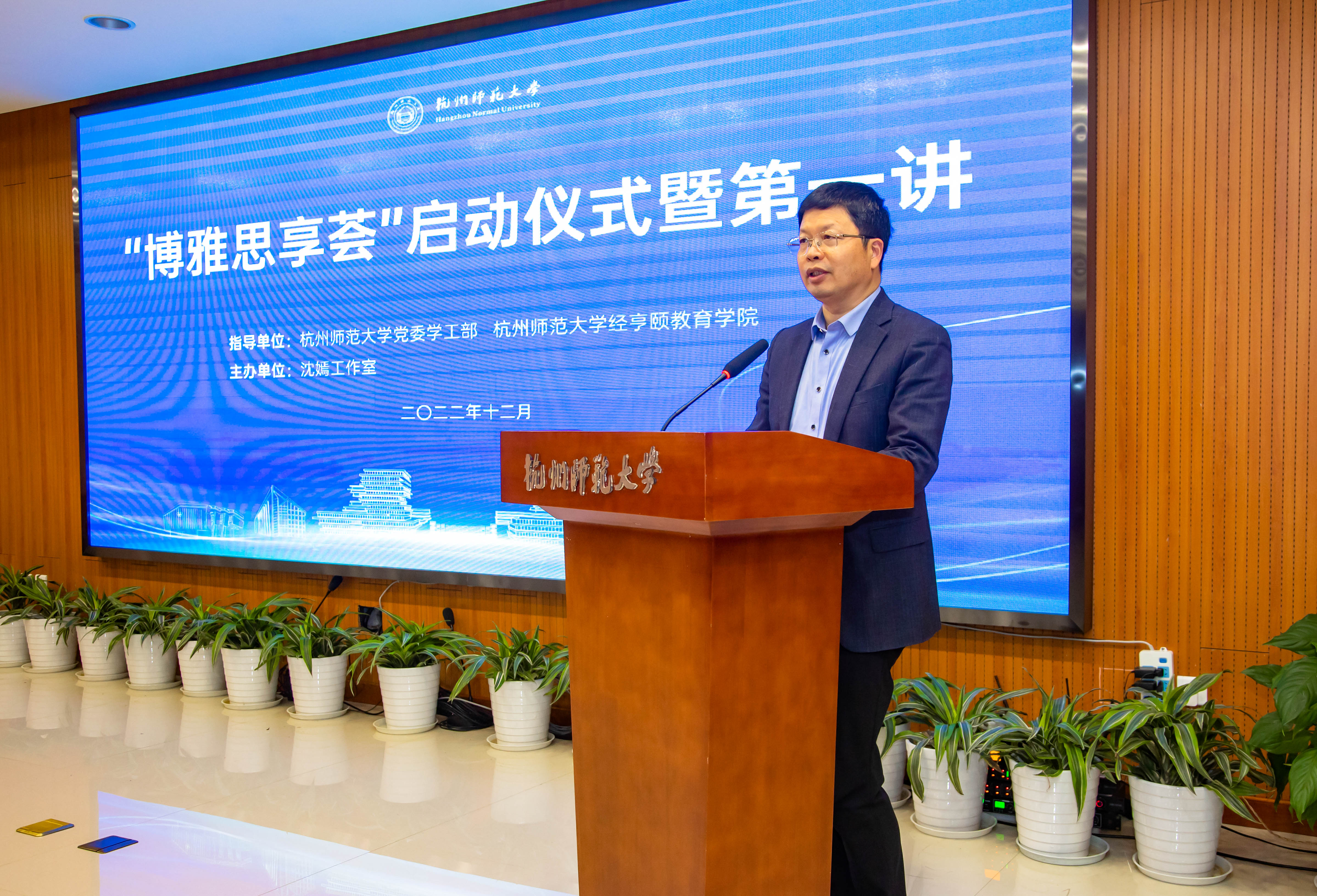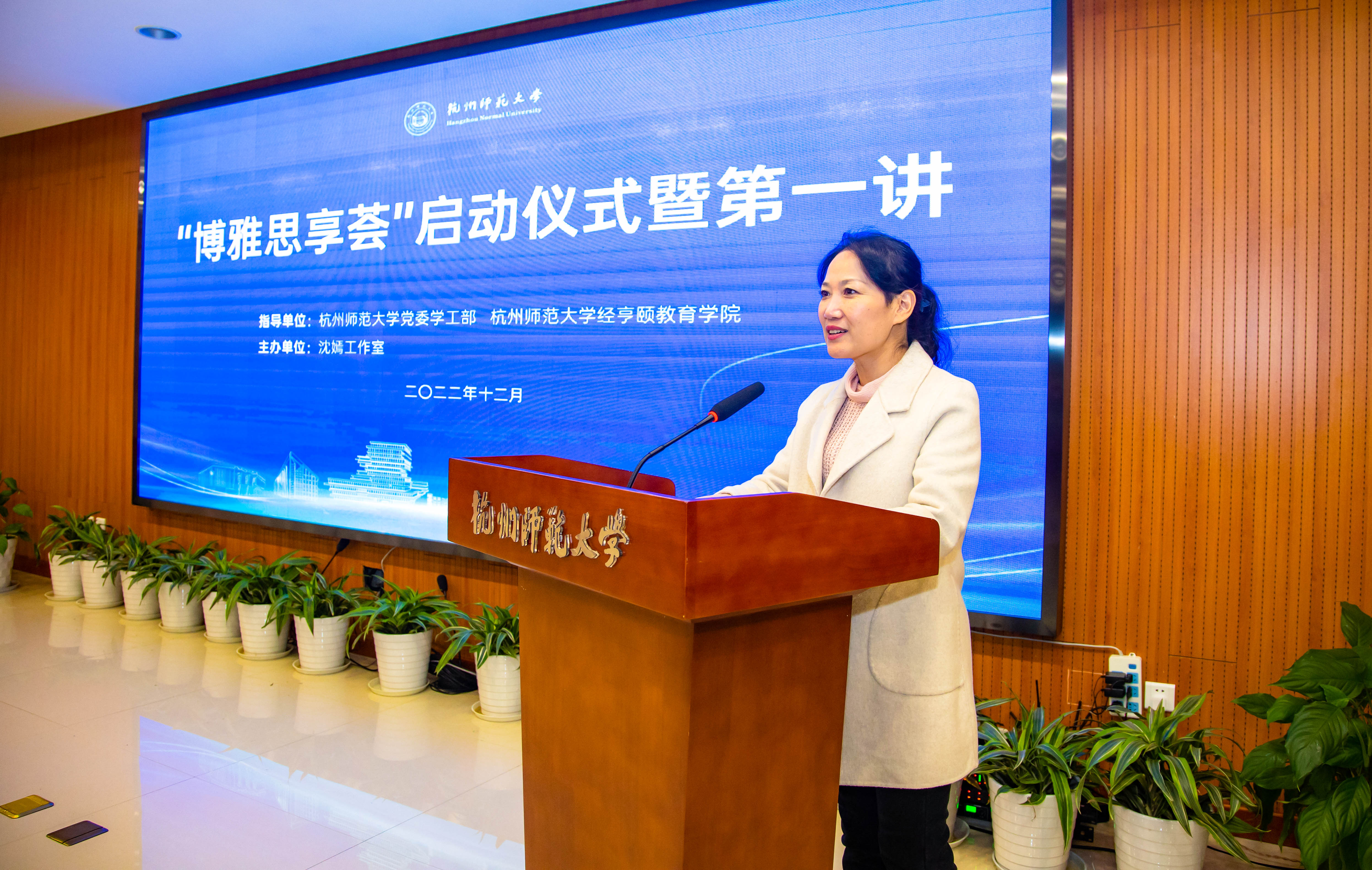 为提升辅导员思想政治教育工作水平,充分发挥优秀辅导员示范引领、辐射带动作用,12月5日晚,在我校党委学工部、色情av影片 指导下,由沈嫣工作室主办的“博雅思享荟”启动仪式暨第一讲活动在我校仓前校区举办。东北师范大学党委常委、副校长王占仁教授,我校党委副书记应飚教授,校党委学工部部长金向华、副部长曹永勇,色情av影片 党委书记蒋璐敏出席启动仪式。本次活动线上线下联合举办,部分学院分管学生工作书记和辅导员以及学生代表参与其中。