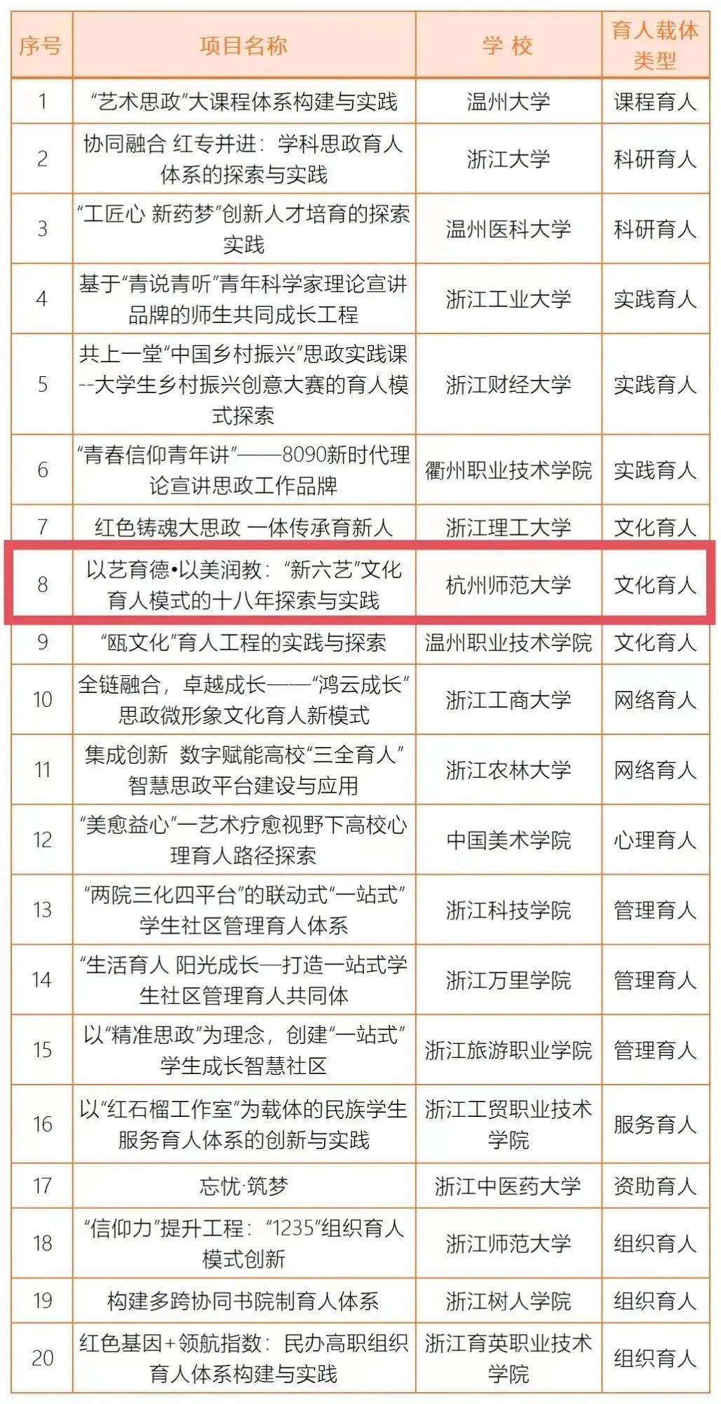 踔厉奋发赢佳绩,笃行不怠得喜报。2022年已进入了倒计时,喜讯也是纷至沓来。我院《以艺育德·以美润教:“新六艺”文化育人模式的十八年探索与实践》项目成功入选2023年度浙江省高校思想政治工作精品项目!