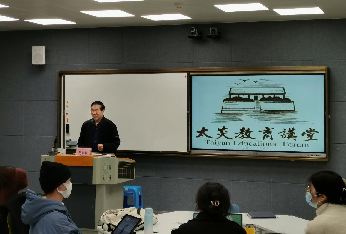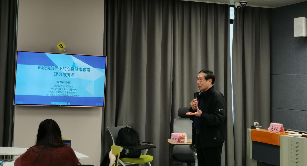 2022年12月7日下午,中国心理卫生协会全国理事会名誉理事长,浙江省心理卫生协会理事长,浙江省大众心理援助中心首席专家赵国秋做客学院太炎教育讲堂,为我院师生作题为“后疫情时代下的心身健康教育理论与技术”讲座。我院师生70余人参加,讲座由赵立和杨群教授主持。