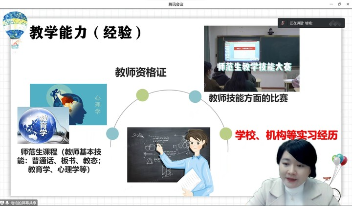 交流会上,沈校长金句与妙语齐出,佳言同趣谈共舞,博得线上听众赞叹无数。沈校长从教育技术学专业毕业生最关切的11个问题出发,将其划分为“客观因素”“竞争力”等不同的类型后做出解答,并就如何发挥自身核心竞争力提供多种解决思路。发言结束后,沈校长同与会师生互动交流,就部分具体问题提出见解。在会议的尾声,徐老师做总结发言。徐老师先是代表系部向沈校长表达谢意,感谢沈校长百忙中抽空来给我们的学生进行指导,自己在也此次交流会上也学到了很多。同时徐老师呼吁,教育技术学系所有师生应向沈校长看齐,争取成为像沈校长一般的青年才俊,努力学习,奋发向上,为教育事业贡献自己的一份力量。