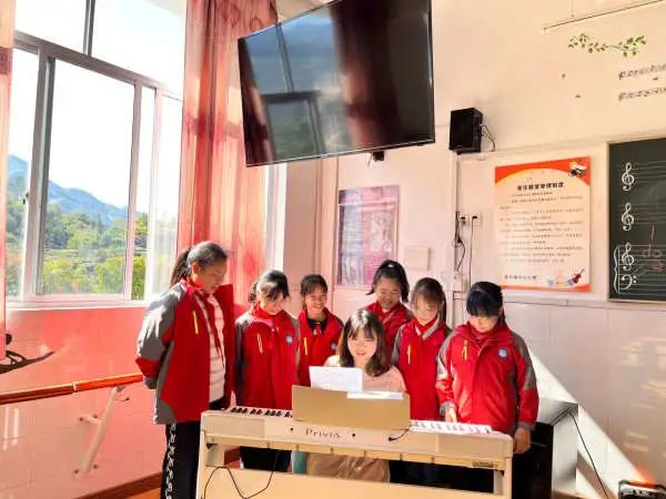 枫坪乡中心小学仅有47个学生和9个在岗老师,距离县城有近一小时车程,是松阳县最偏远的农村小学之一。“刚来时,我们学校特别缺音体美老师,我同时教数学和美术课。”潘玲莉说。
