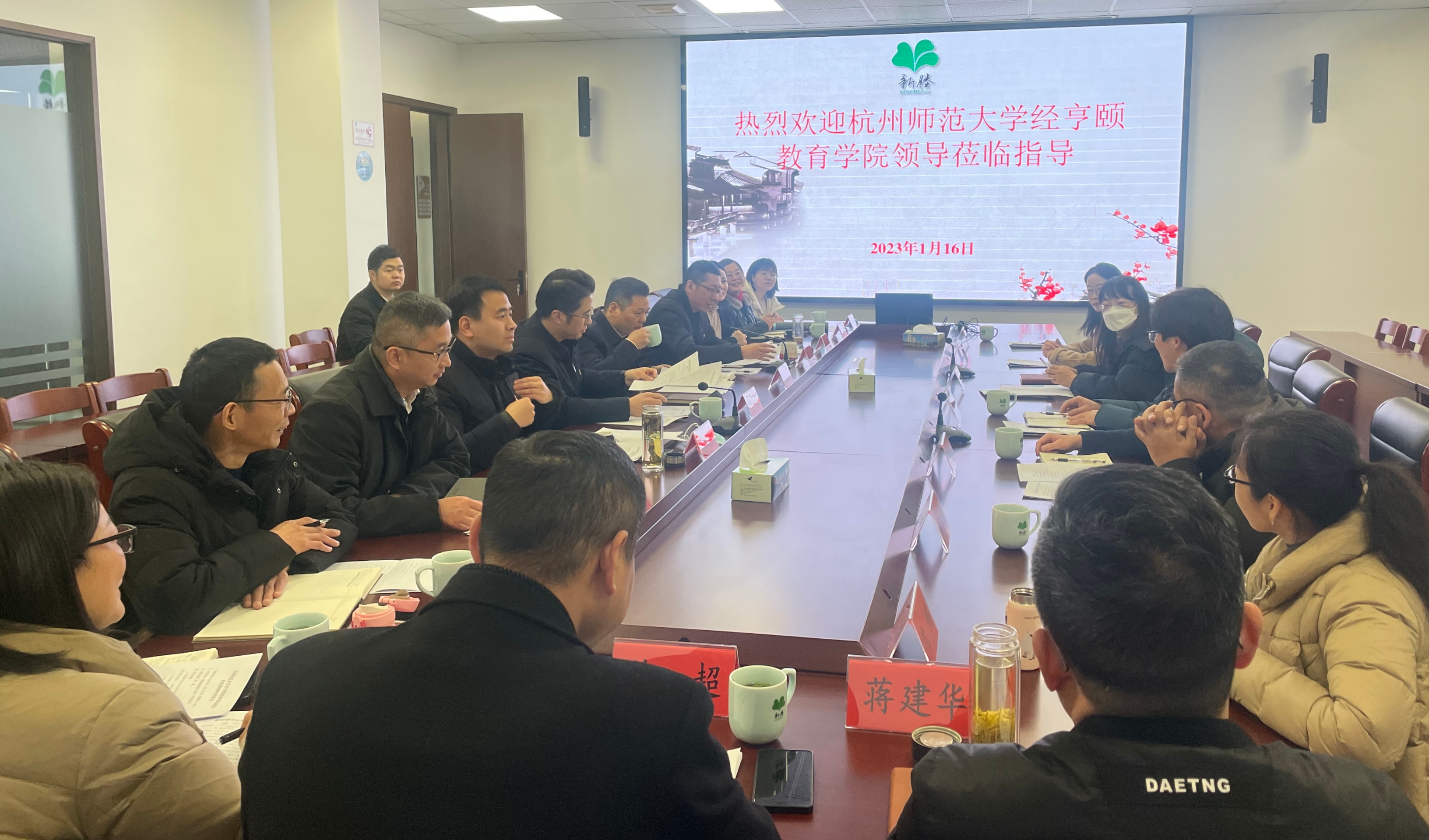 1月16日,院长张斌贤,执行院长严从根,党委书记蒋璐敏,副院长蒋永贵、许建美,党委副书记沈嫣一行应邀赴嘉兴市秀洲区考察秀洲区和新塍镇教育工作。秀洲区副区长李宇聪,秀洲区教体局局长金国中,秀洲区新塍镇党委书记翁松刚、镇长周乾等领导陪同考察、座谈。