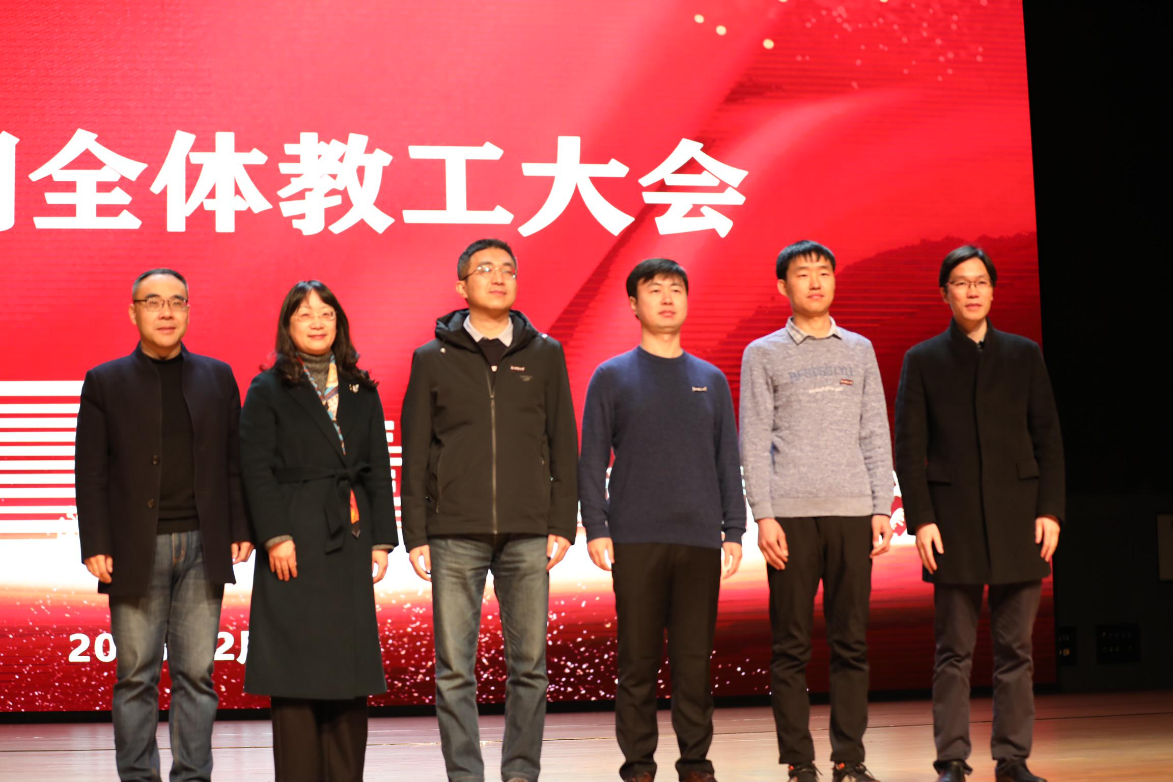 第二阶段是新学期工作大会。首先是欢迎新教师入职仪式。新入职的宋岭、孔苏、贾建荣老师分别上台作自我介绍,学院领导为新入职教师佩戴校徽,欢迎新教师加入学院大家庭,共同为学院未来发展努力奋斗。