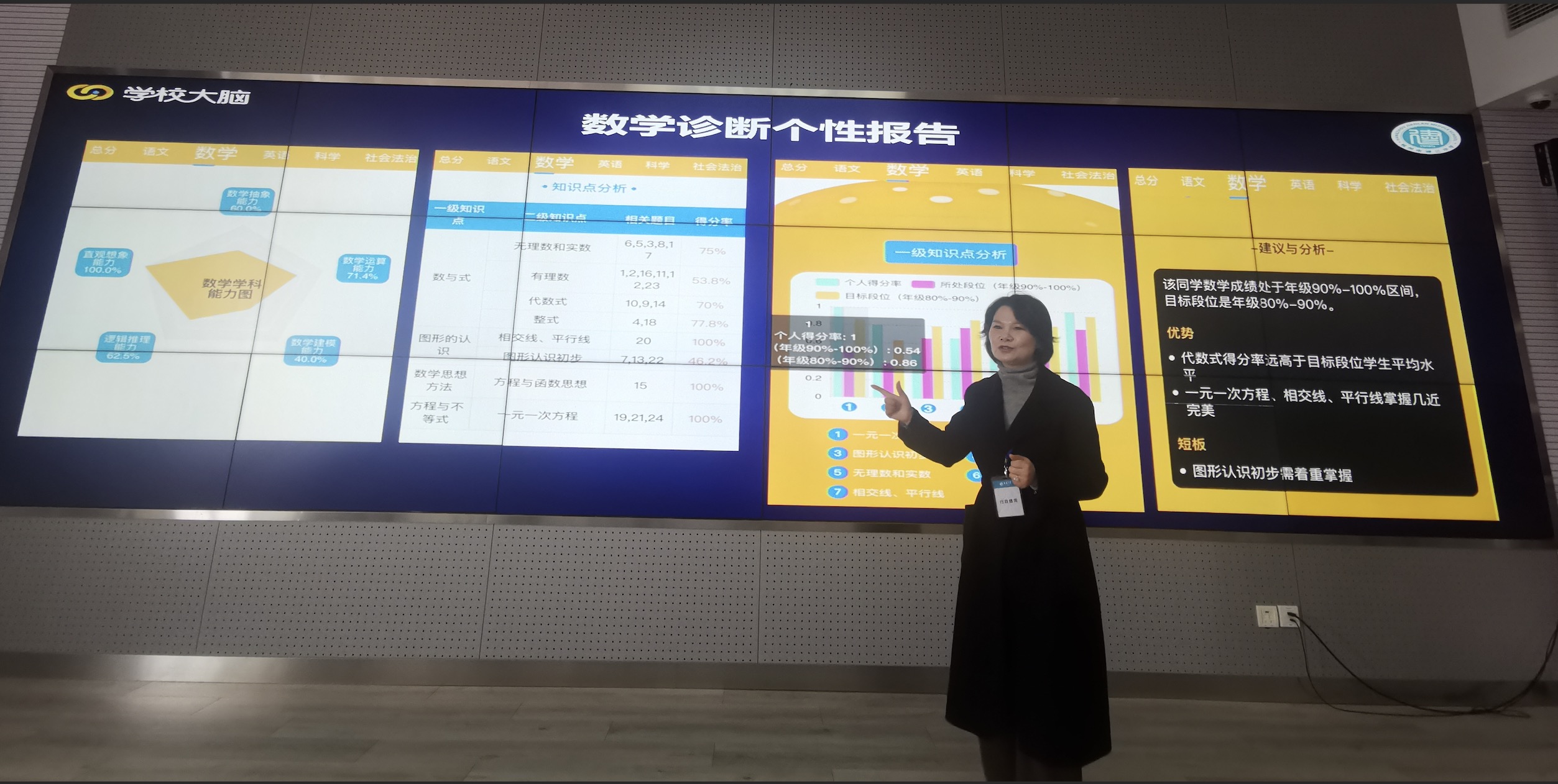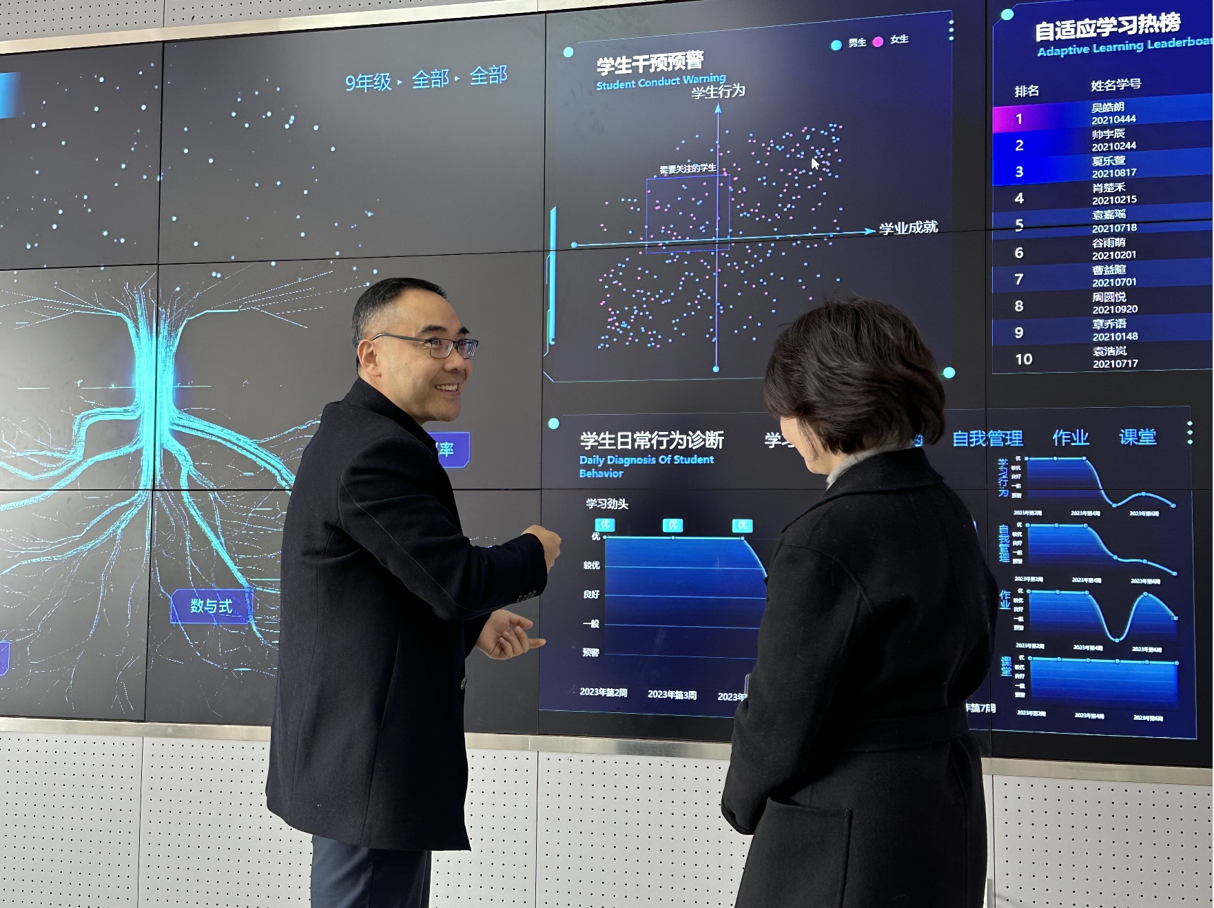 当天上午,在杭州市建兰中学校长饶美红陪同下,参观了校园环境,重点考察该校的“建兰学校大脑”智慧教育系统。饶校长对“学校大脑”智慧教育系统进行了详细的介绍,通过具体案例讲解如何通过“学校大脑”进行的个性化学习、学生日常行为诊断、综合评价等活动。相关技术人员也对“学校大脑”智慧教育系统操作进行了说明。学院考察组与学校老师进行了深入的交流,双方进一步将在学校智慧课堂教学研究及指导等方面开展深入合作。